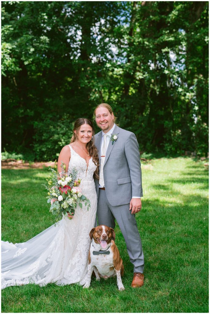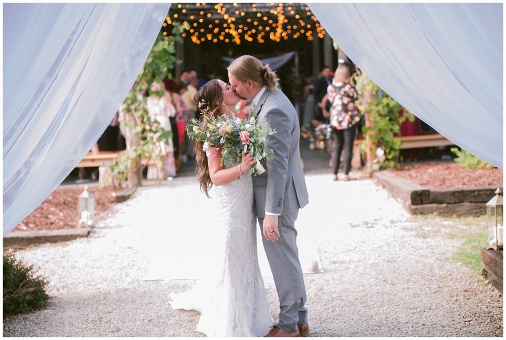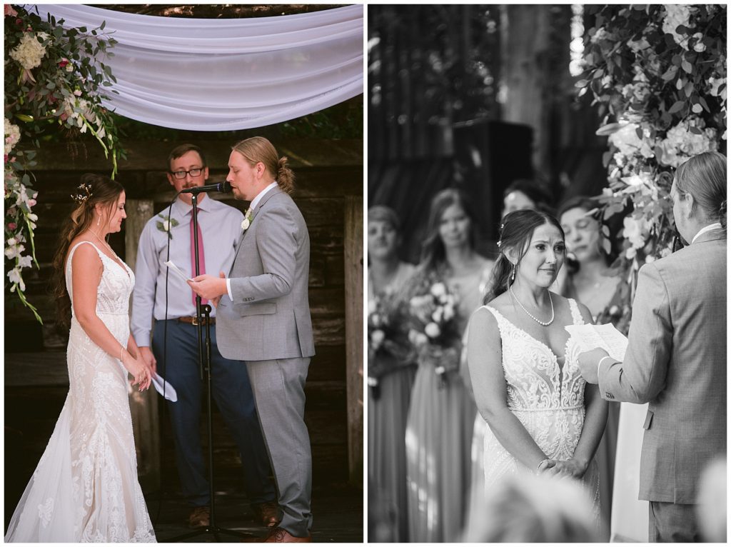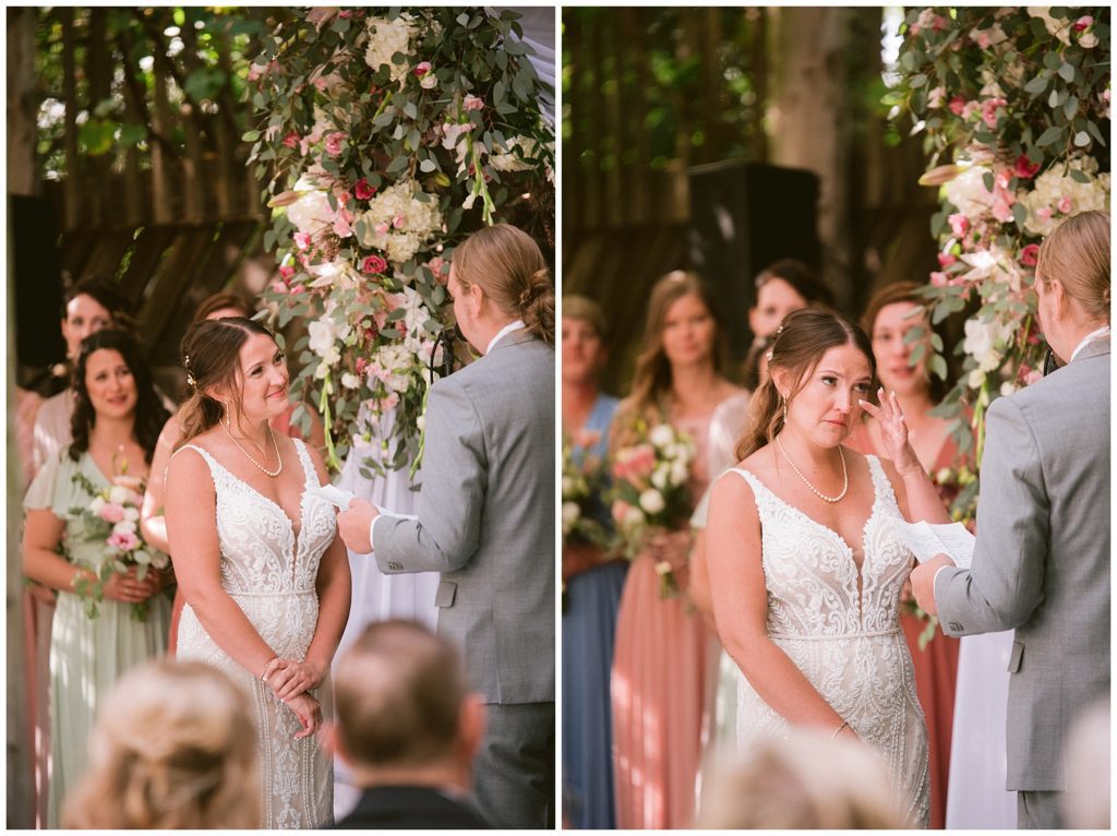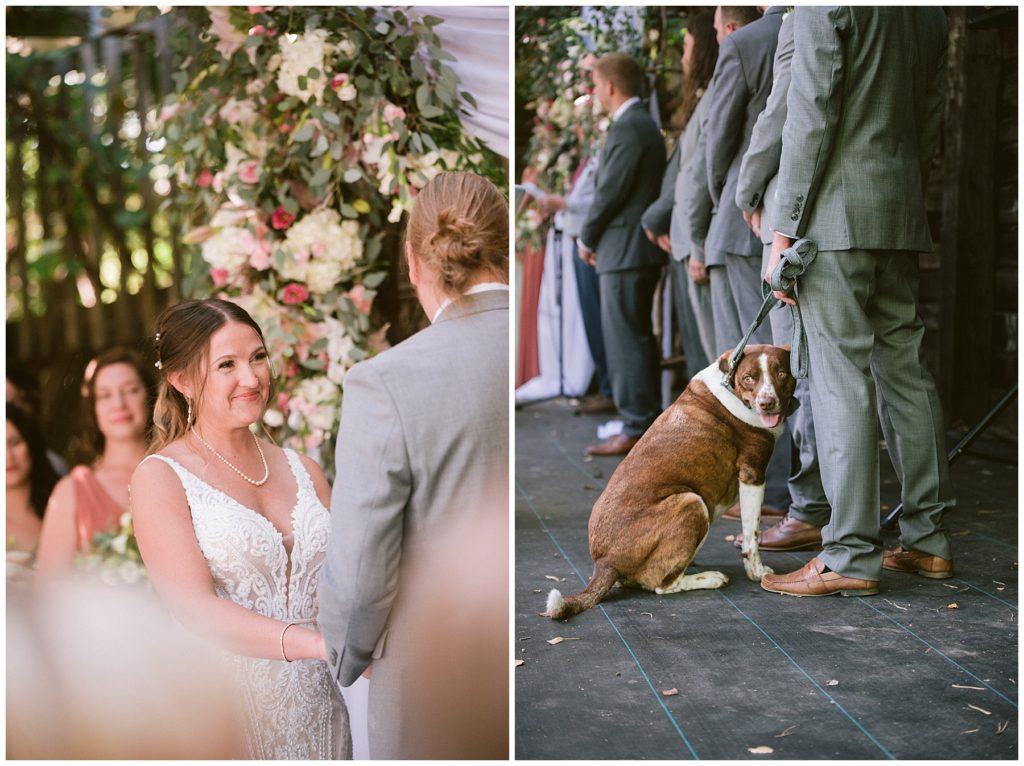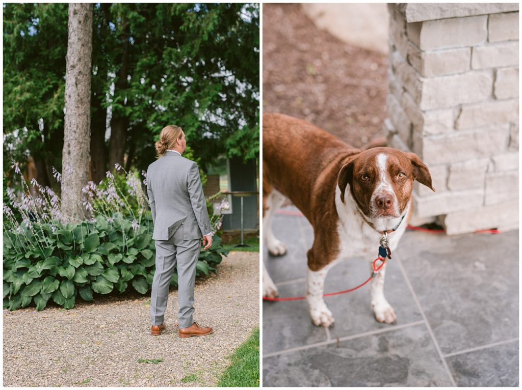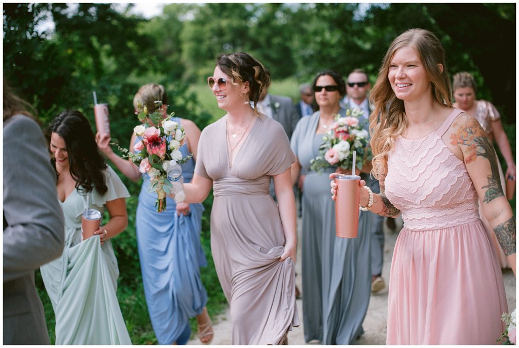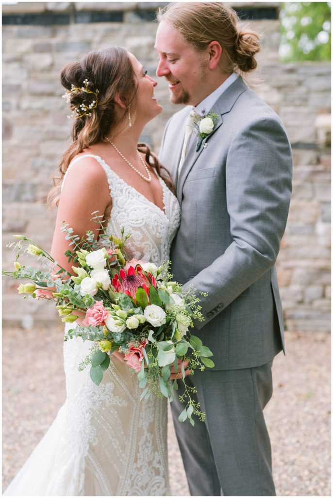 Adam’s mother was a genus with the florals, and made gorgeous bouquets for the women that looked beautiful against the neutral palette of dresses they all wore. Adam and his groomsmen wore grey suits that when put up against the green backdrop looked incredible.