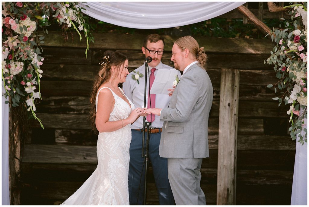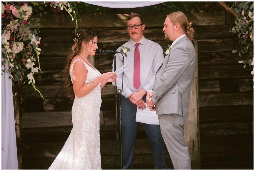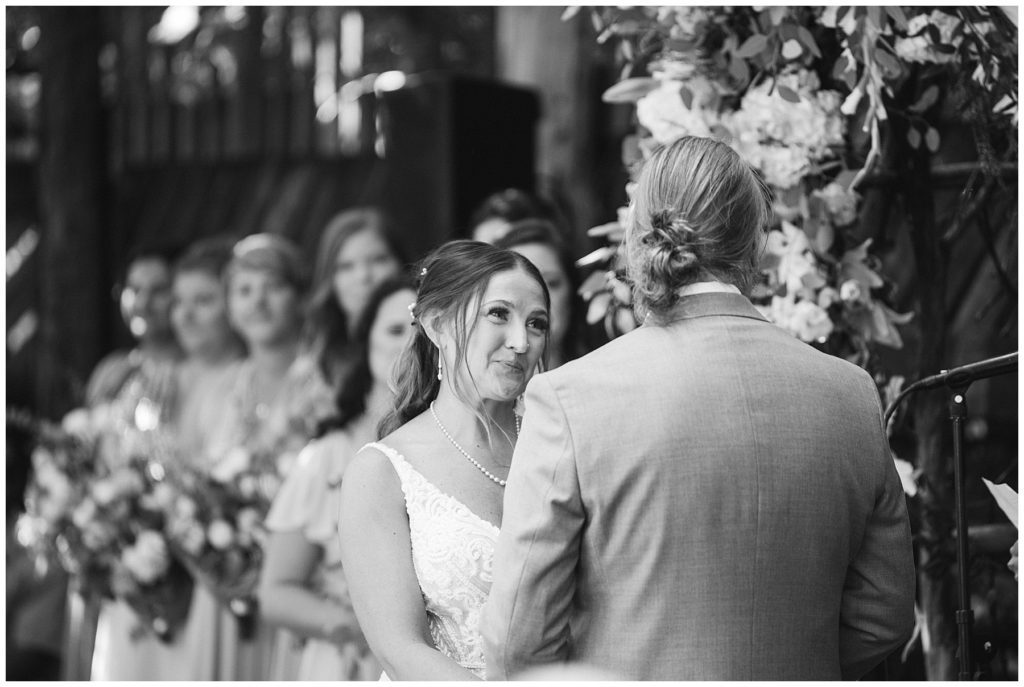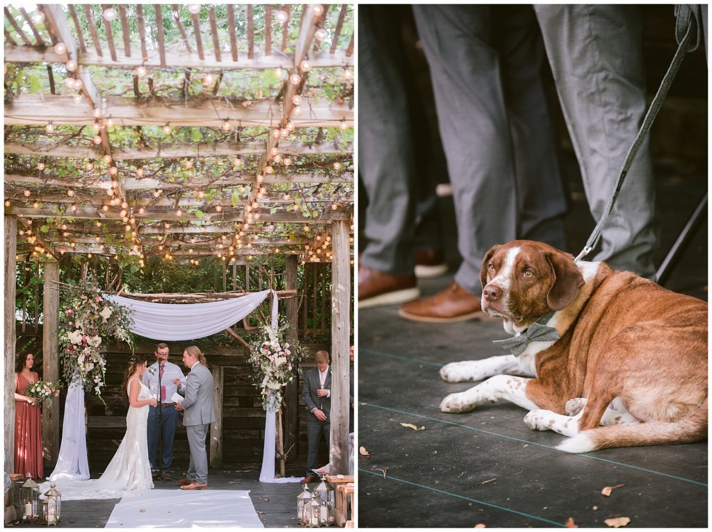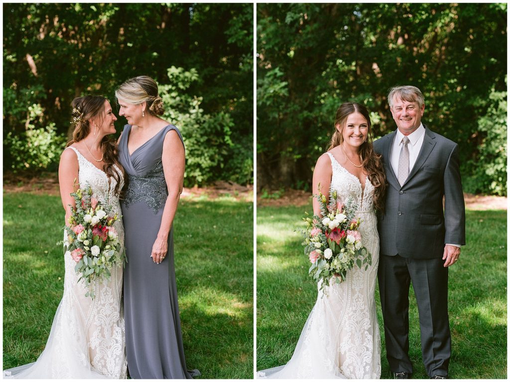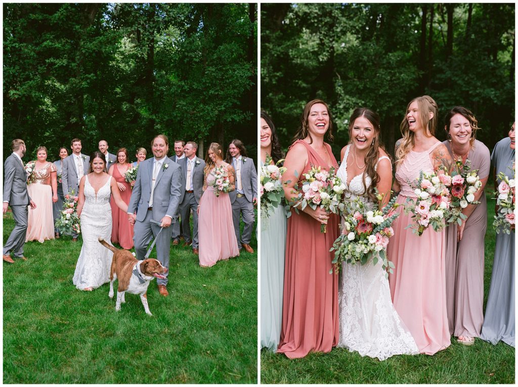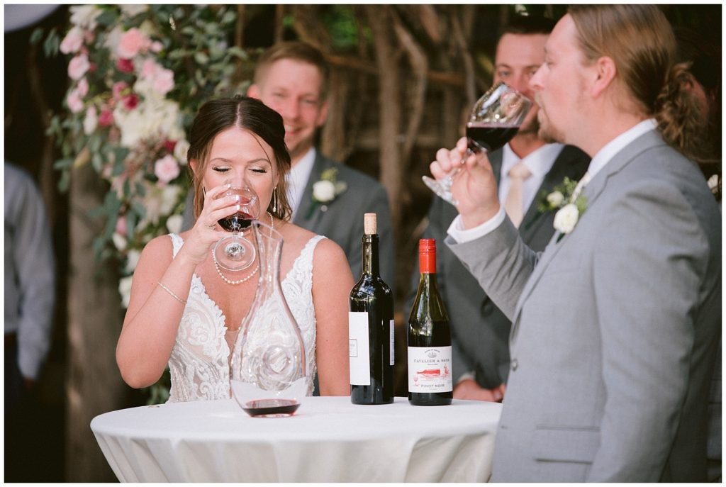 Adam’s mother was a genus with the florals, and made gorgeous bouquets for the women that looked beautiful against the neutral palette of dresses they all wore. Adam and his groomsmen wore grey suits that when put up against the green backdrop looked incredible.