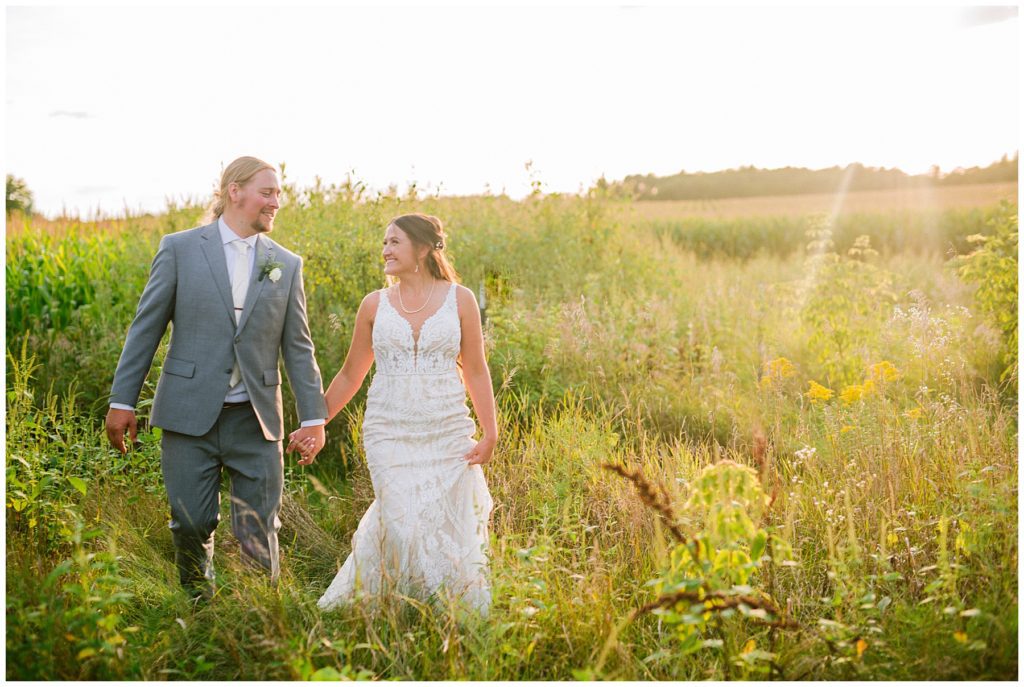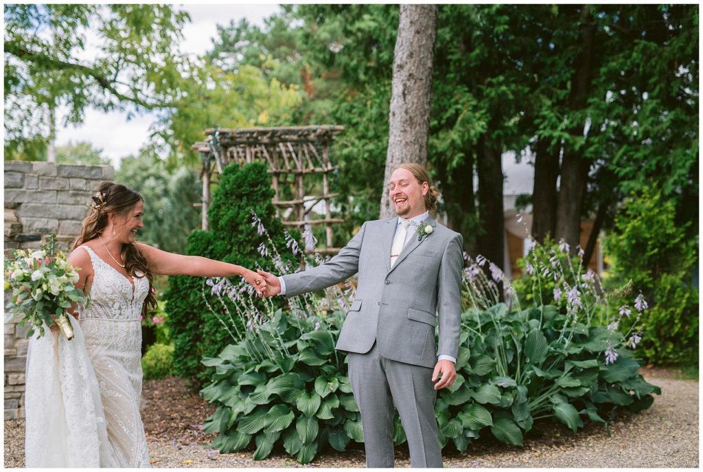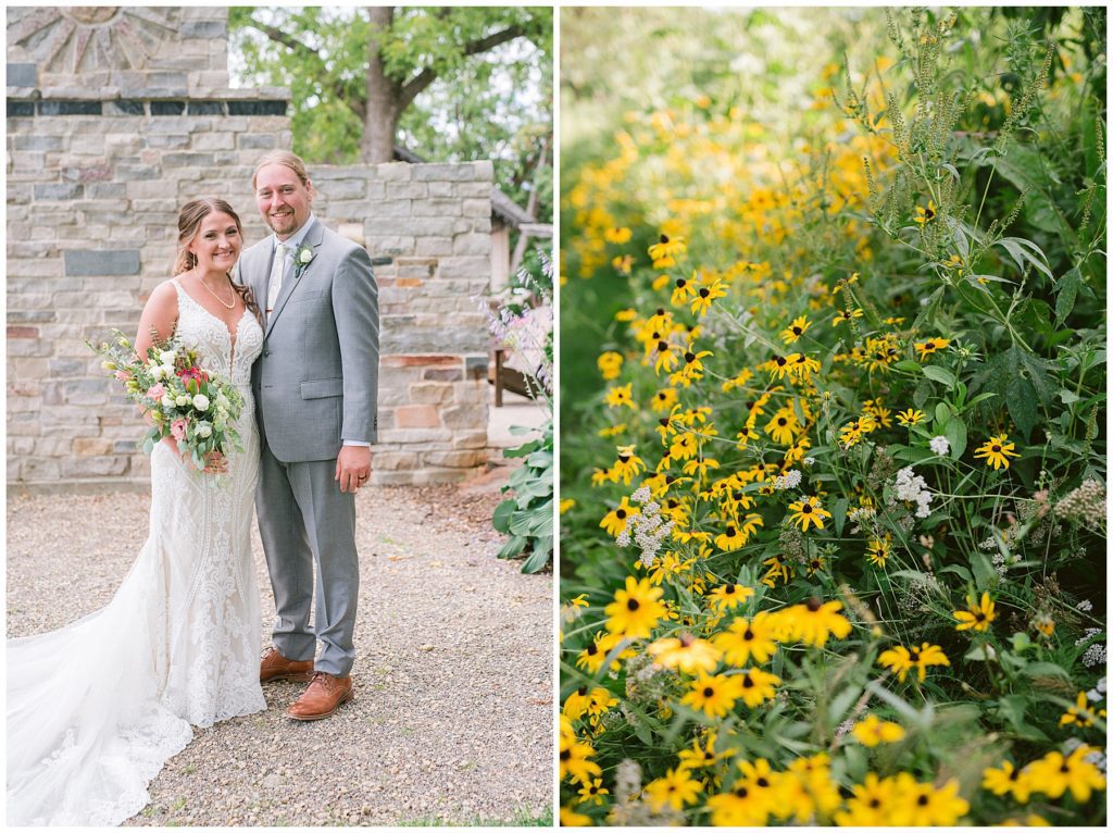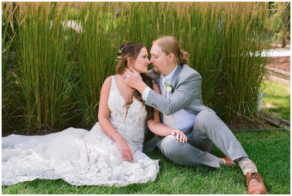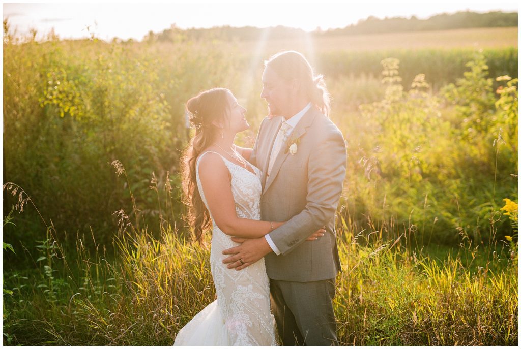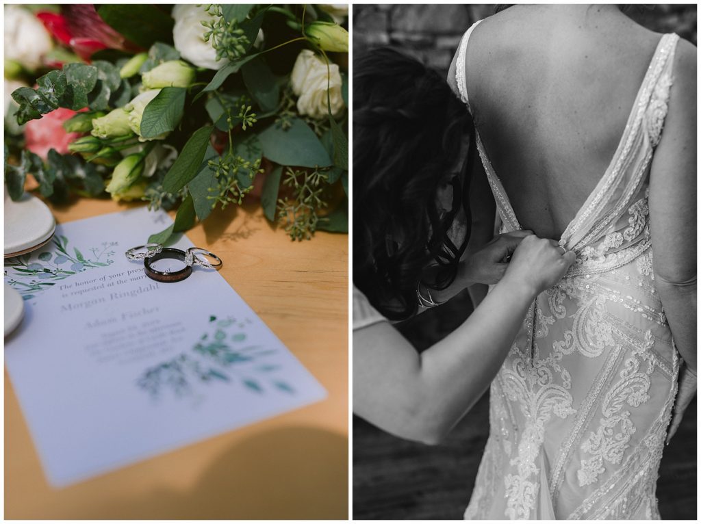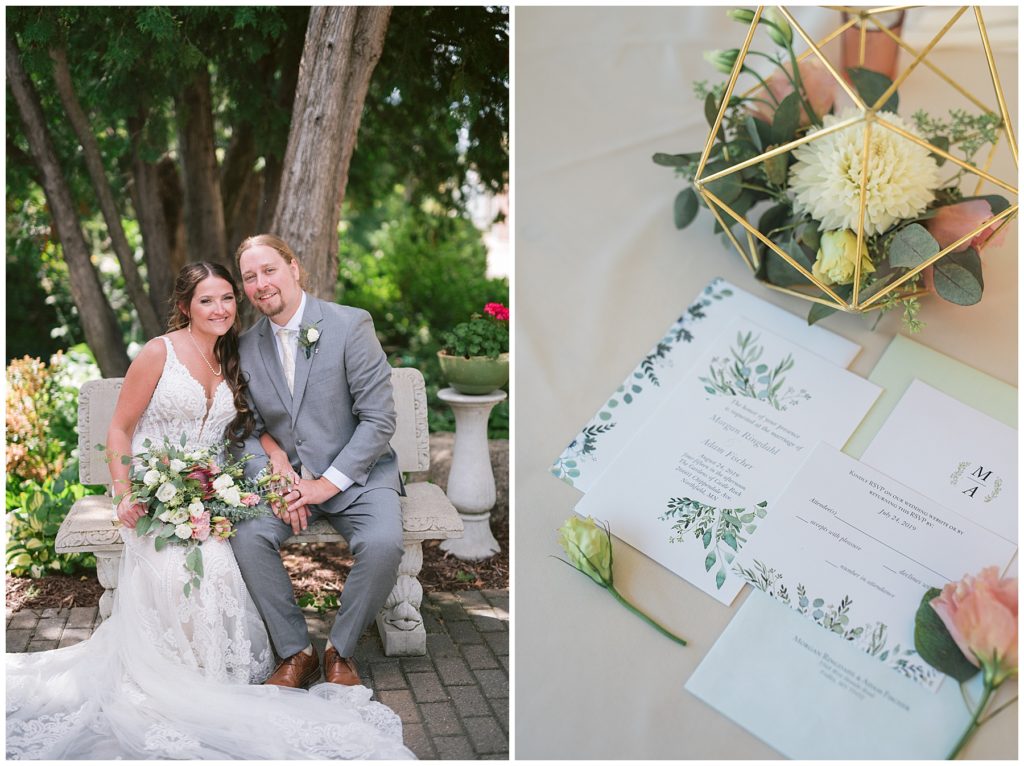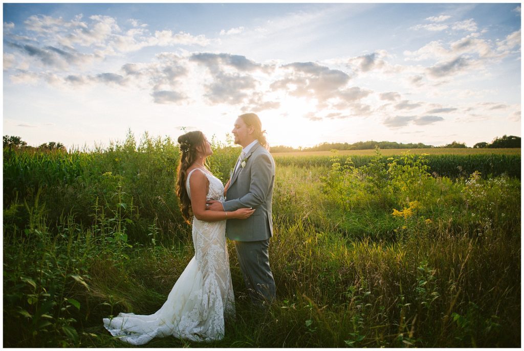 Their beautiful wedding day incorporated all the things that Morgan and Adam love, especially music and friendship. Among the beautiful space at the Garden’s of Castle Rock in Northfield, the couple were wed under a beautiful trellis of grapevines and florals. Morgan wore a beautiful Martina Liana gown with a train to die for. She also wore pearls that were her grandmothers and her mother’s bracelet.