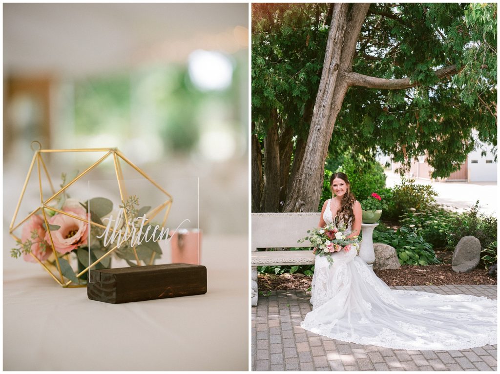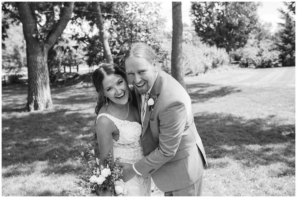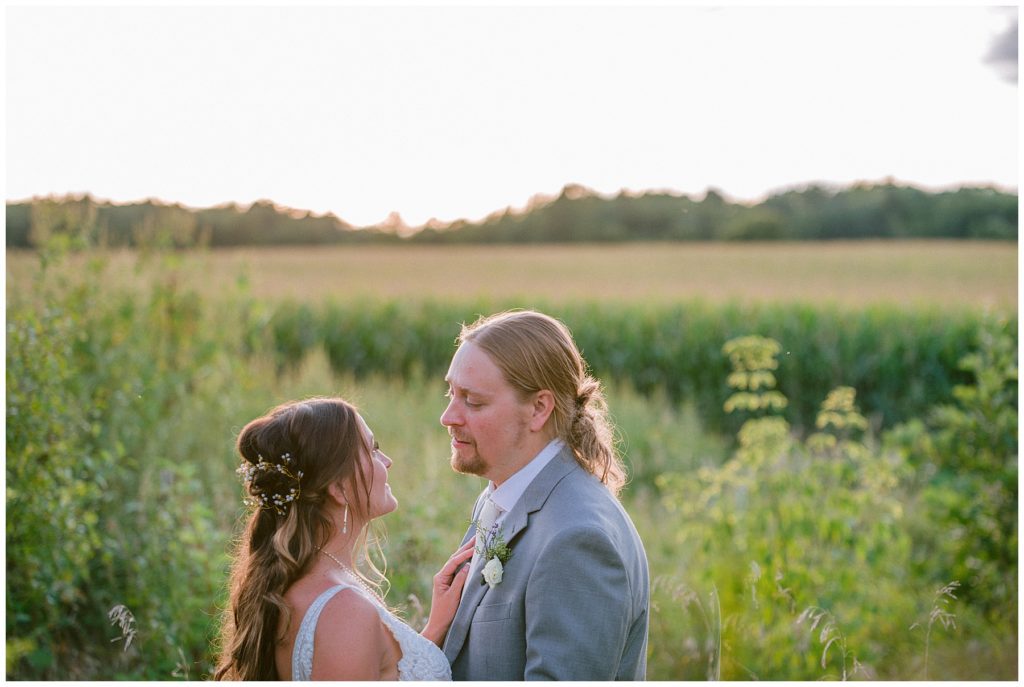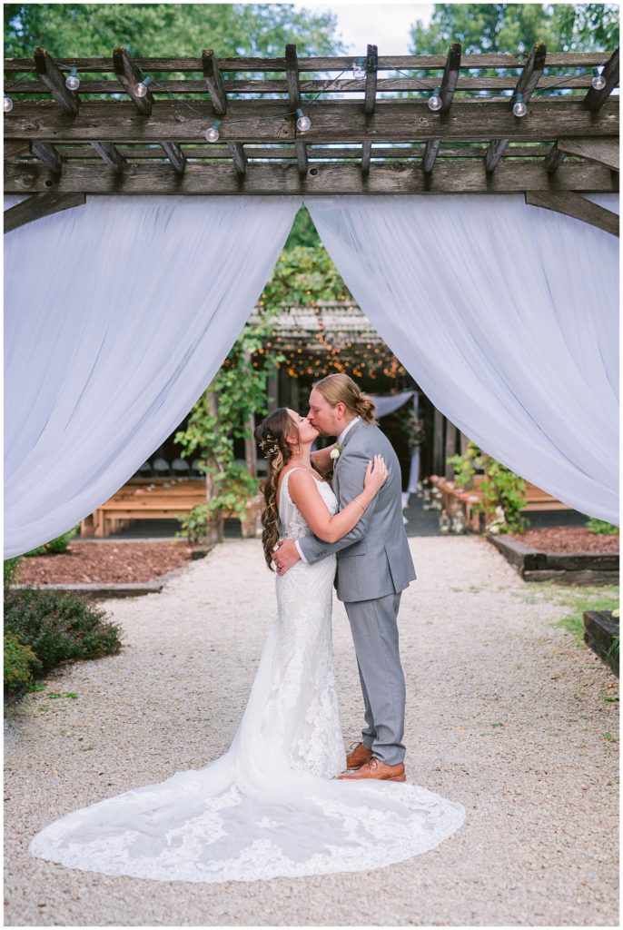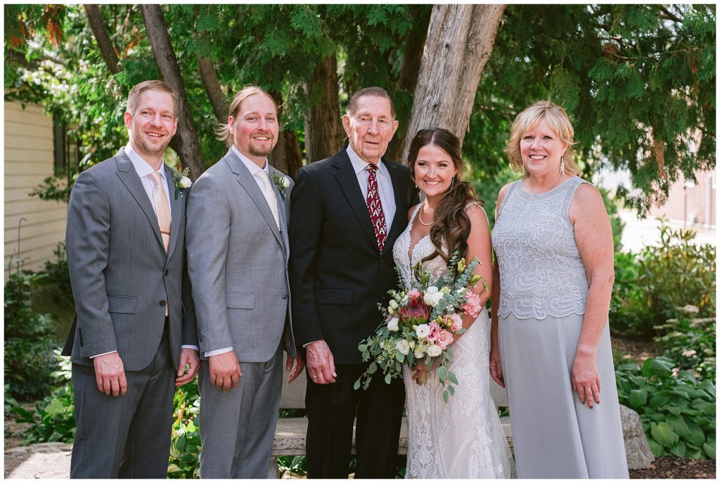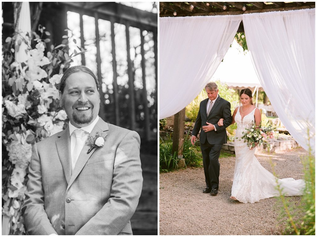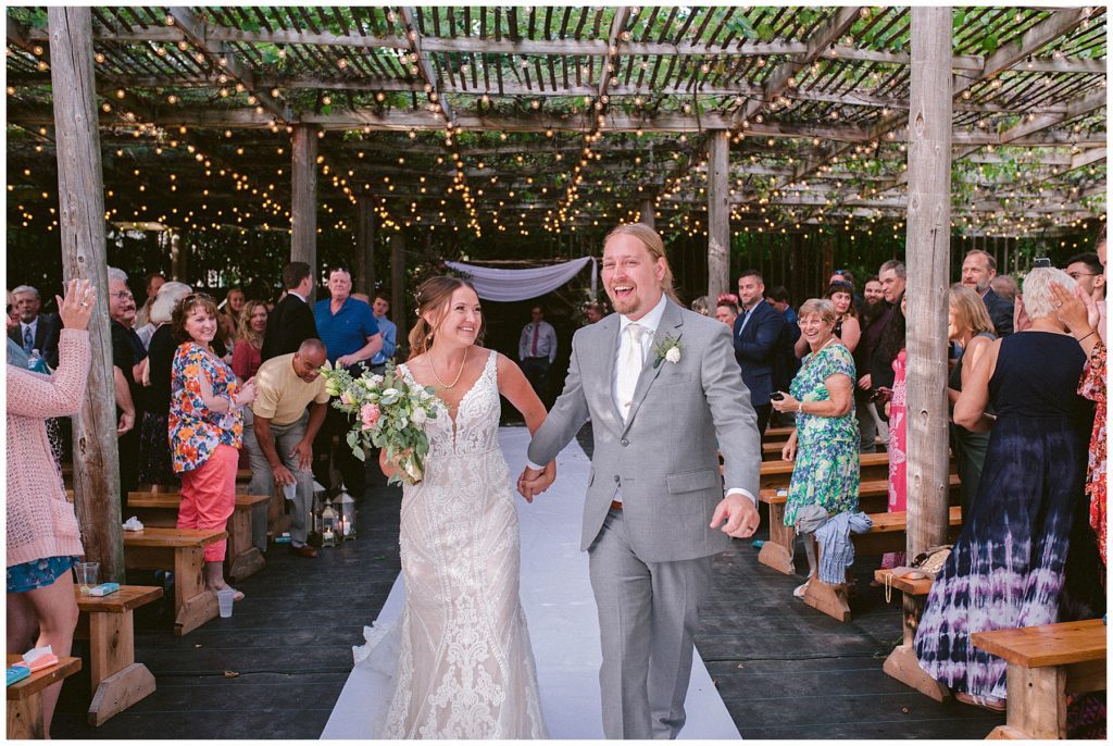 Their beautiful wedding day incorporated all the things that Morgan and Adam love, especially music and friendship. Among the beautiful space at the Garden’s of Castle Rock in Northfield, the couple were wed under a beautiful trellis of grapevines and florals. Morgan wore a beautiful Martina Liana gown with a train to die for. She also wore pearls that were her grandmothers and her mother’s bracelet.