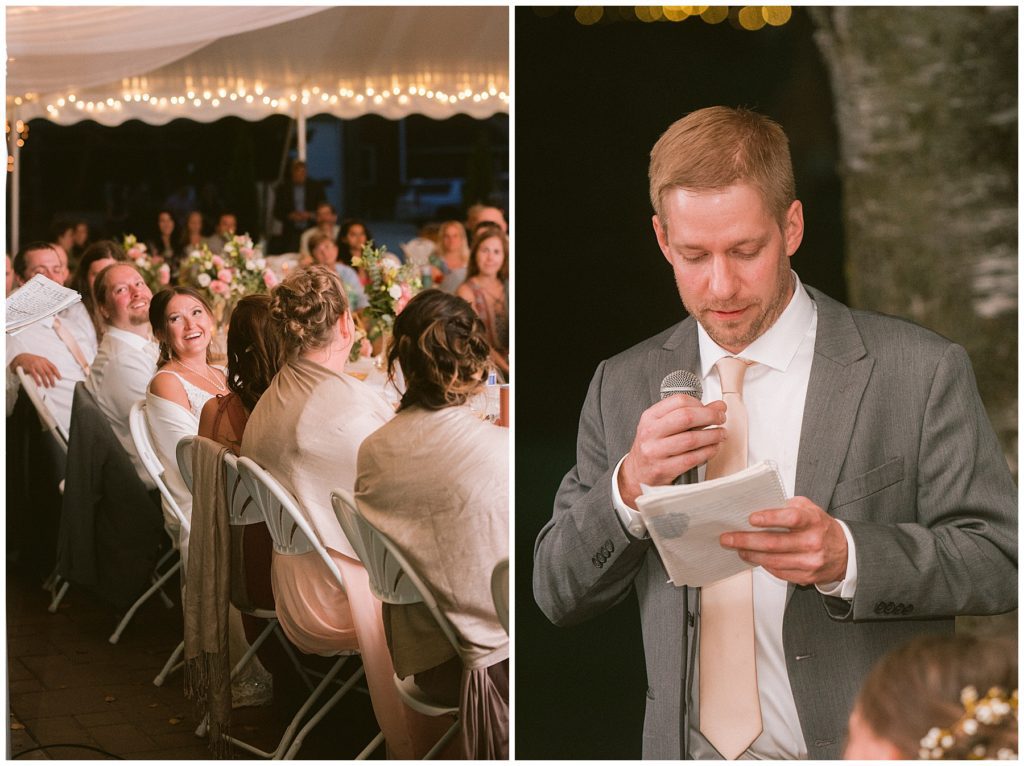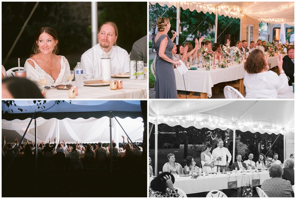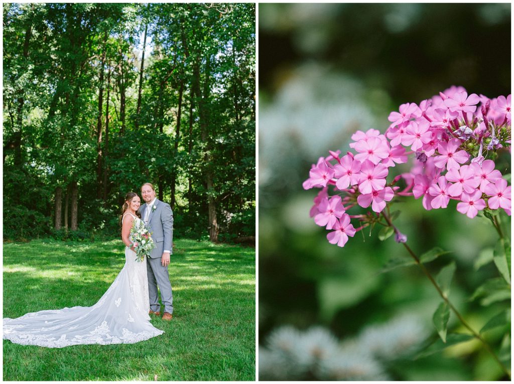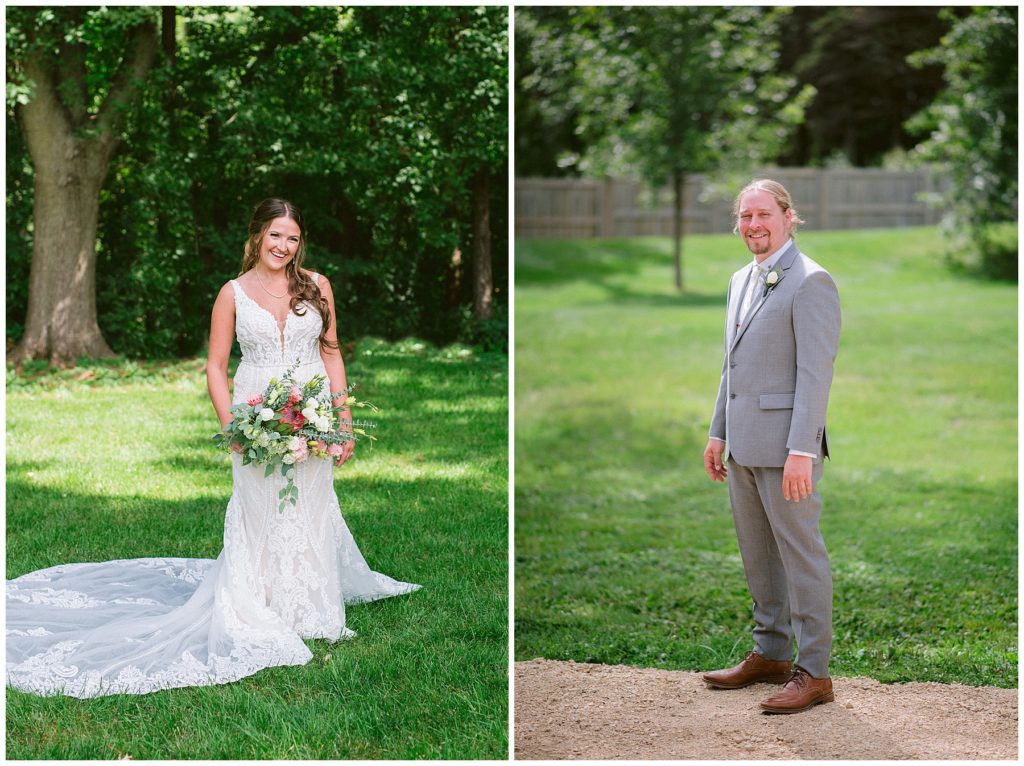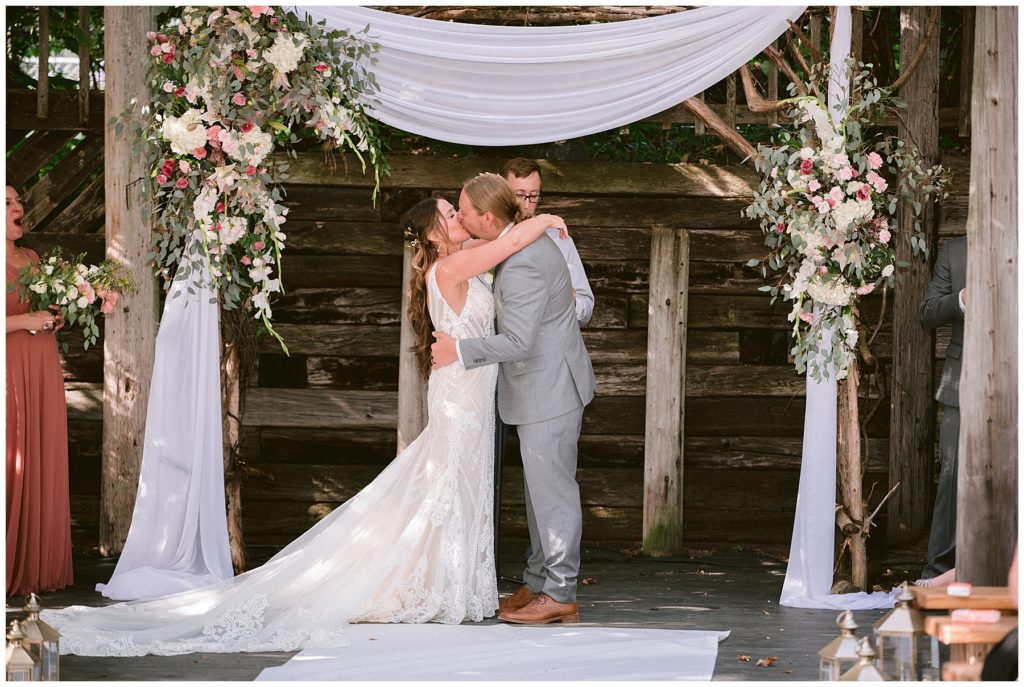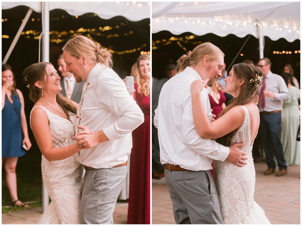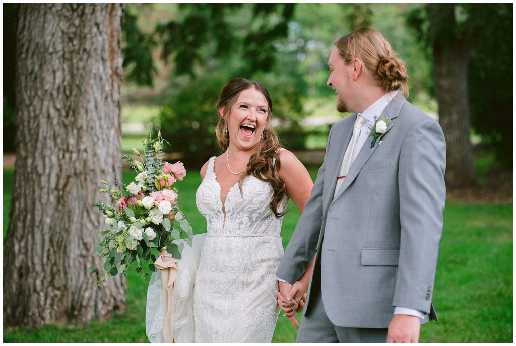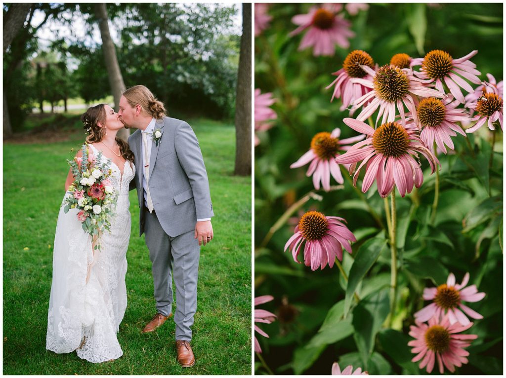 Their beautiful wedding day incorporated all the things that Morgan and Adam love, especially music and friendship. Among the beautiful space at the Garden’s of Castle Rock in Northfield, the couple were wed under a beautiful trellis of grapevines and florals. Morgan wore a beautiful Martina Liana gown with a train to die for. She also wore pearls that were her grandmothers and her mother’s bracelet.