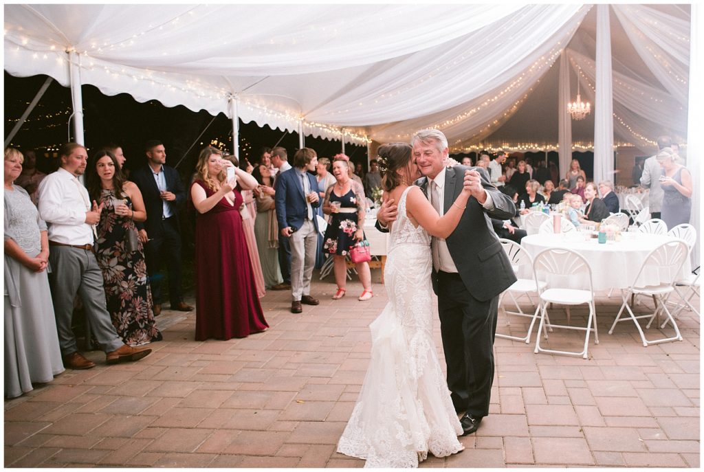 I loved the first look that Morgan and her father had. So emotional and tender, his love for his daughter emanated, and all that watched had a hard time holding back tears. Friends and family came from miles to share in the joy of the day. A perfect blend of nature and elegance, the couple mingled as guests blayed bean bags, enjoyed cocktails and incredible food from Irons in the Fire and danced the night away under the tent.
