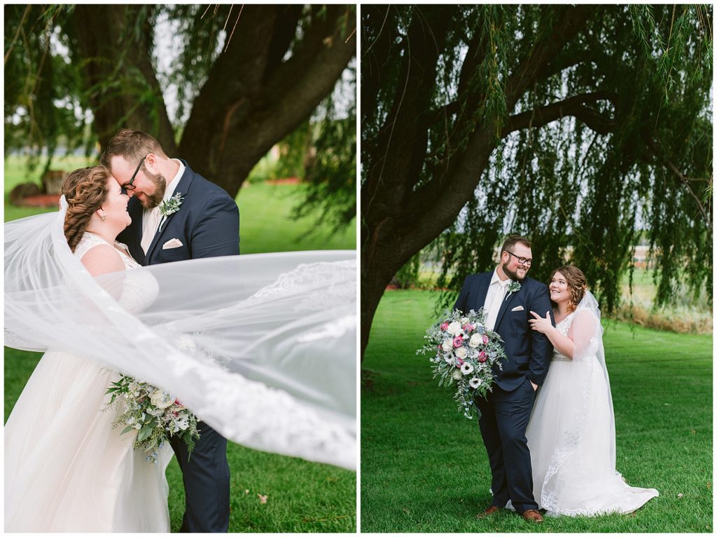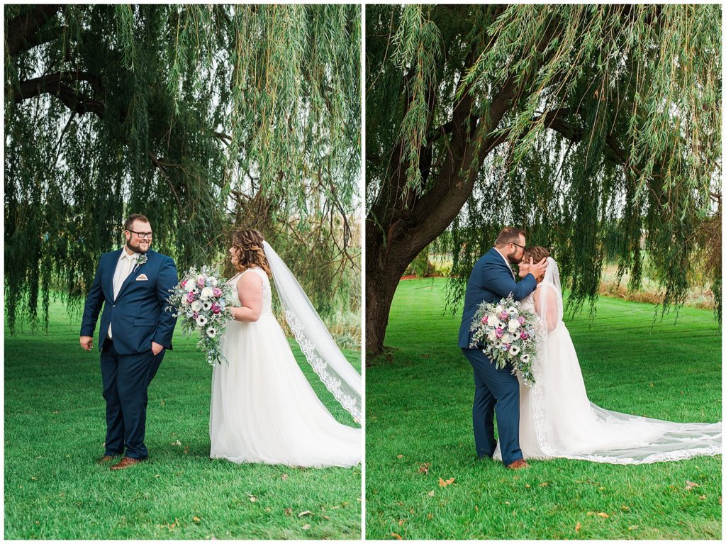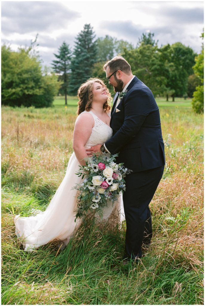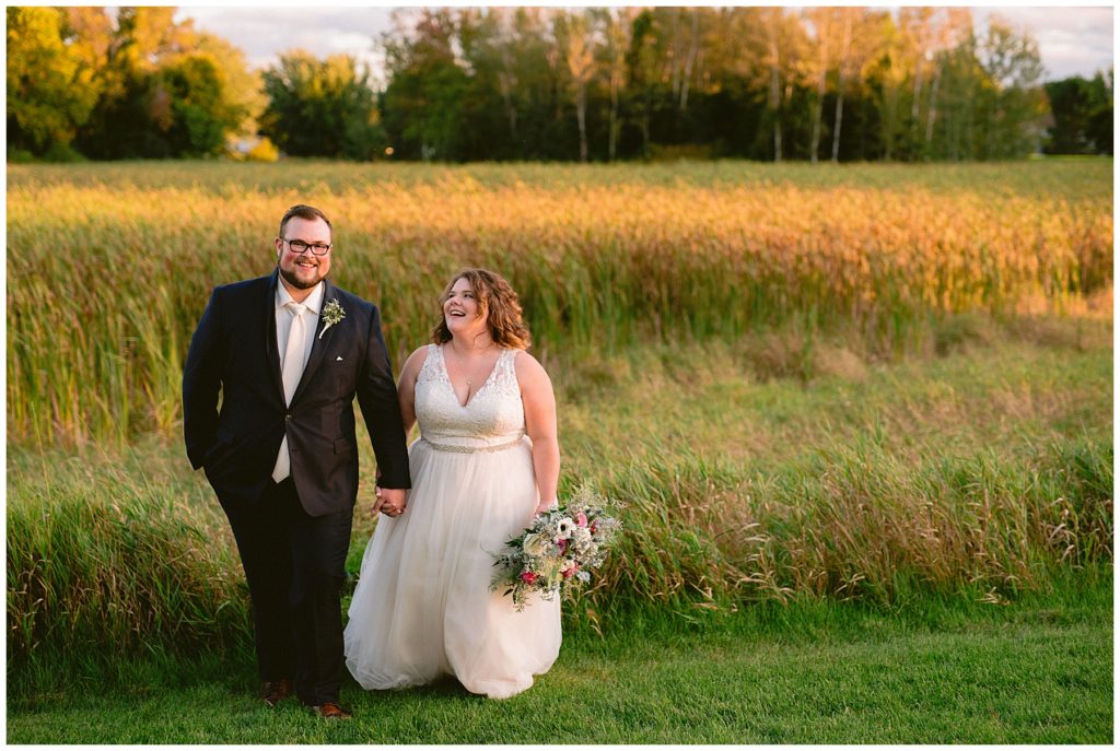 Their fall wedding day was filled with all kinds of weather, from mist and cold, to a beautiful golden hour and sunshine. It was truly a day for friends and family to travel to the beautiful Grands at Mulligans to celebrate with the couple.