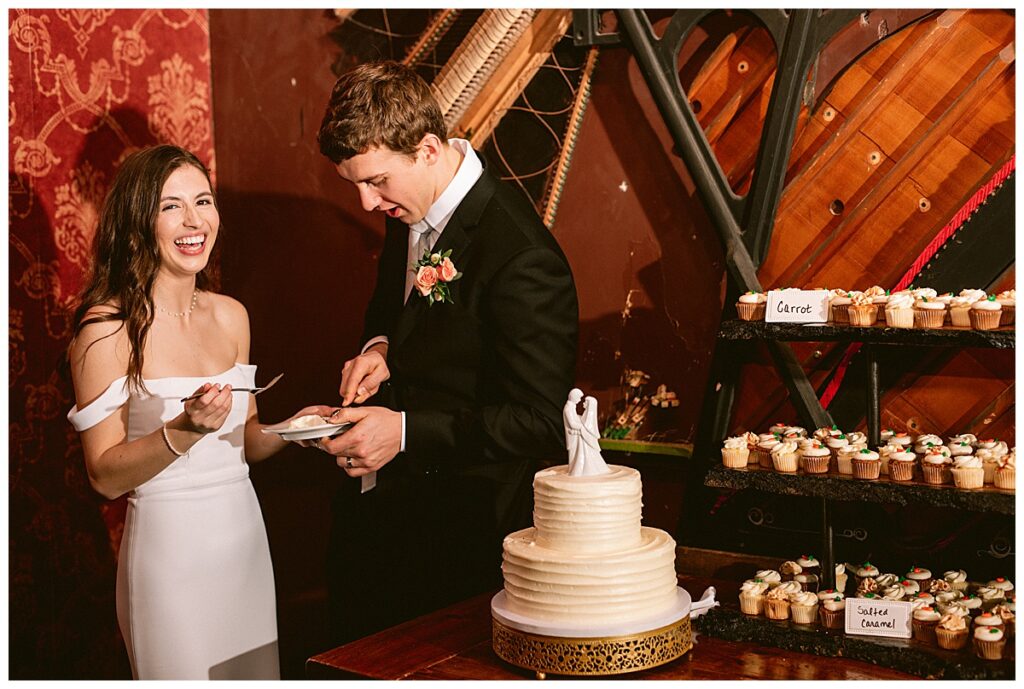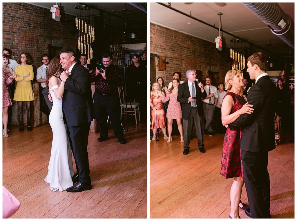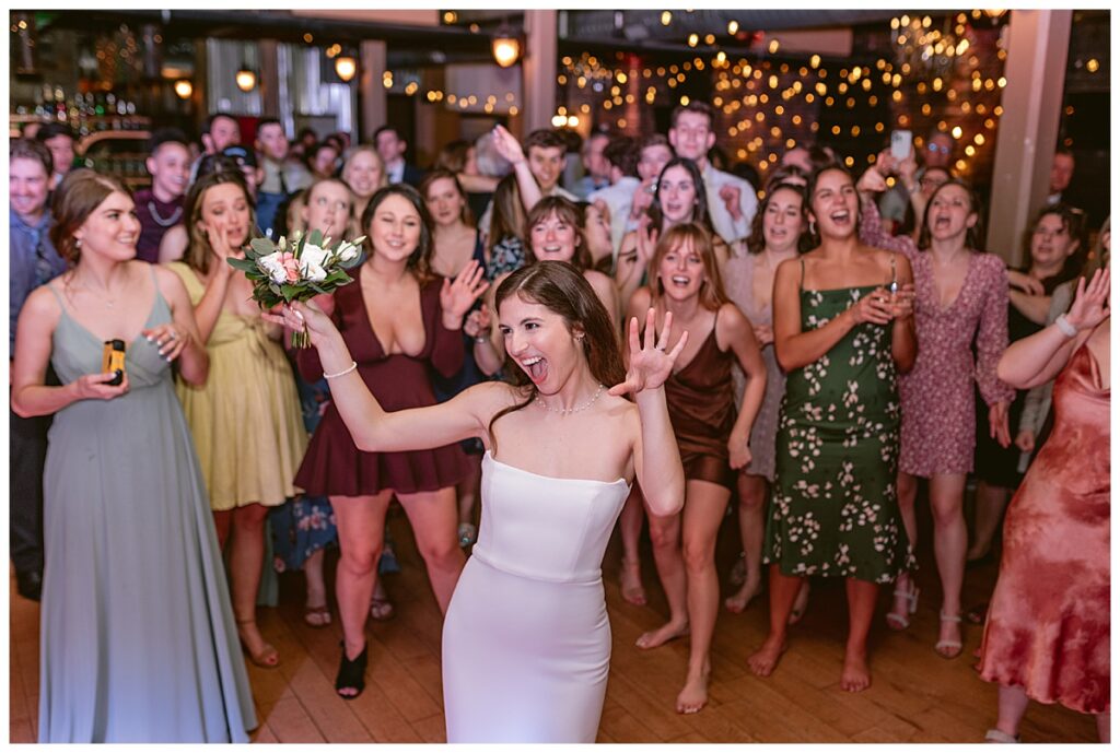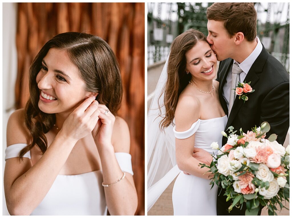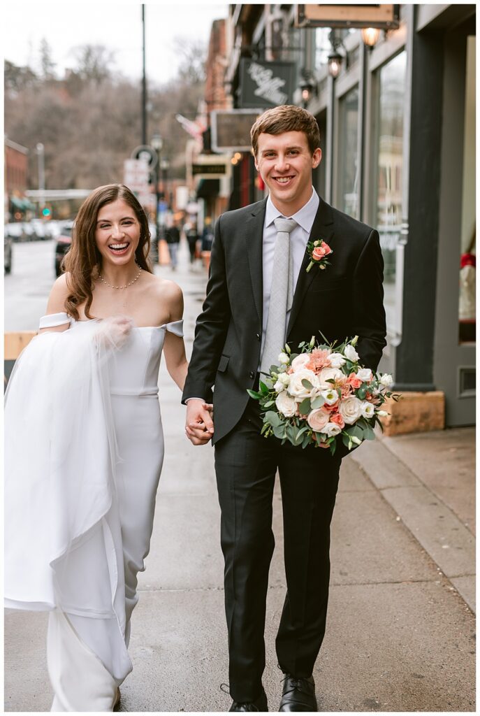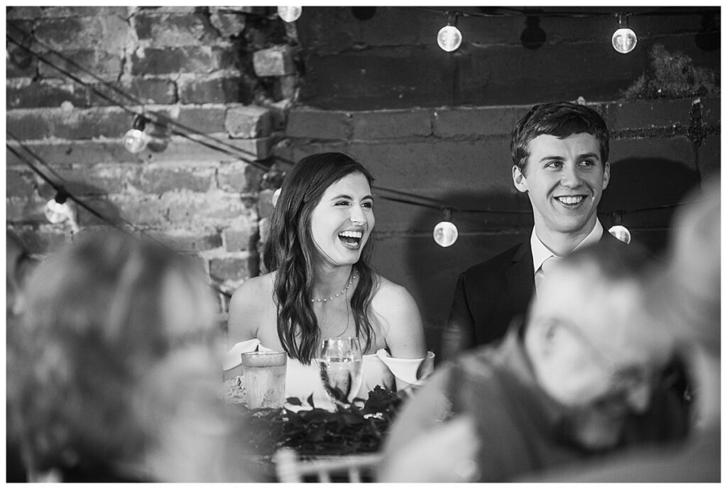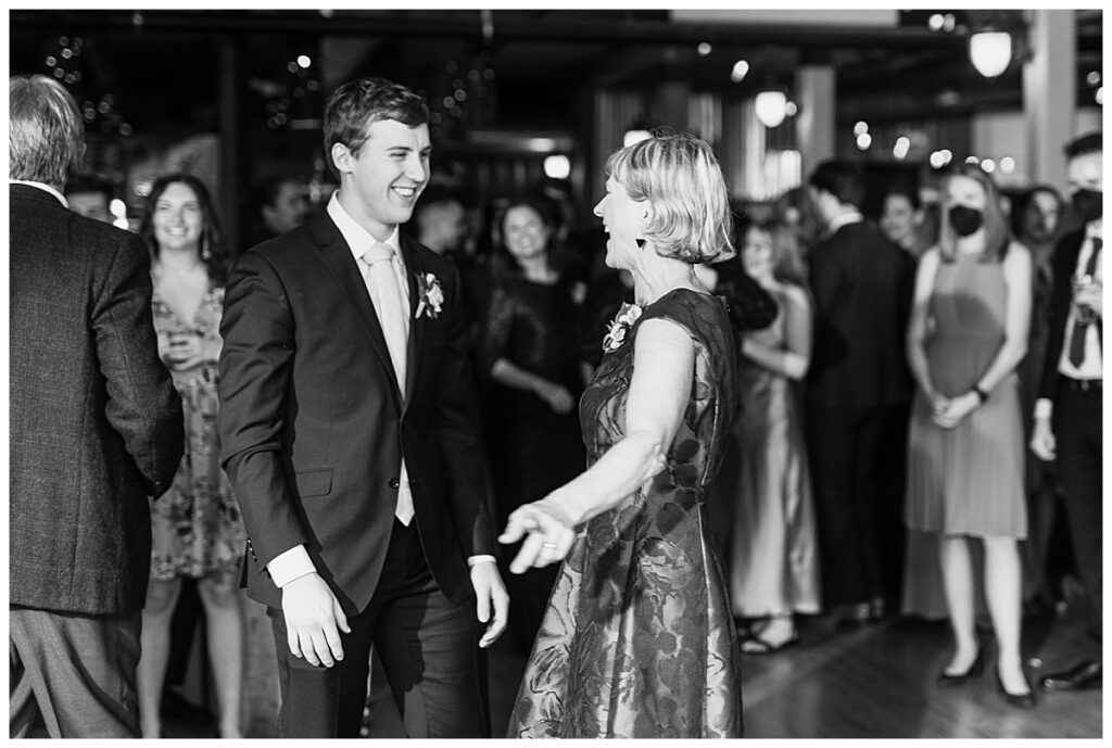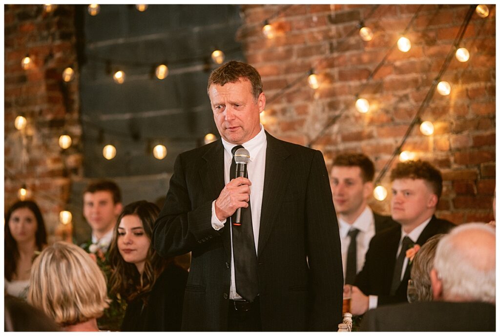 Having friends and family together again was so exciting for Sophia and Teddy and they were so happy to finally be able to celebrate with them. The Loft at Studio J was a perfect location for their April wedding day. This historic industrial building in the beautiful city of Stillwater was a perfect location for both indoor and outdoor photos. Sophia’s lace dress from A&Be Bridal was even more beautiful when paired with the sage bridesmaid dresses from Birdy Grey. Lakeside floral created the most incredible bouquets which held white and melon roses and a variety of greens . Around Sophia’s bouquet, a small pendant from her great grandmother who immigrated to America from Ireland was perfectly placed. Teddy and his groomsmen sported classic black suits with black ties from Atmosfere. Each beautifully decorated table was numbered with a photo of Sophia and Teddy at the age in which the table number was. A blank sheet of paper was also placed at each table so that together guests could write a letter for Sophia and Teddy to open at their future anniversaries. Bella Vida served a tasty meal while Cakealicious provided an incredible cake and sweet cupcakes for the guests. Joe from Day One DJ welcomed the couple and guests to the dance floor and the party began and did not stop until the night was over and there was even a guest song sung by Teddy’s uncle.