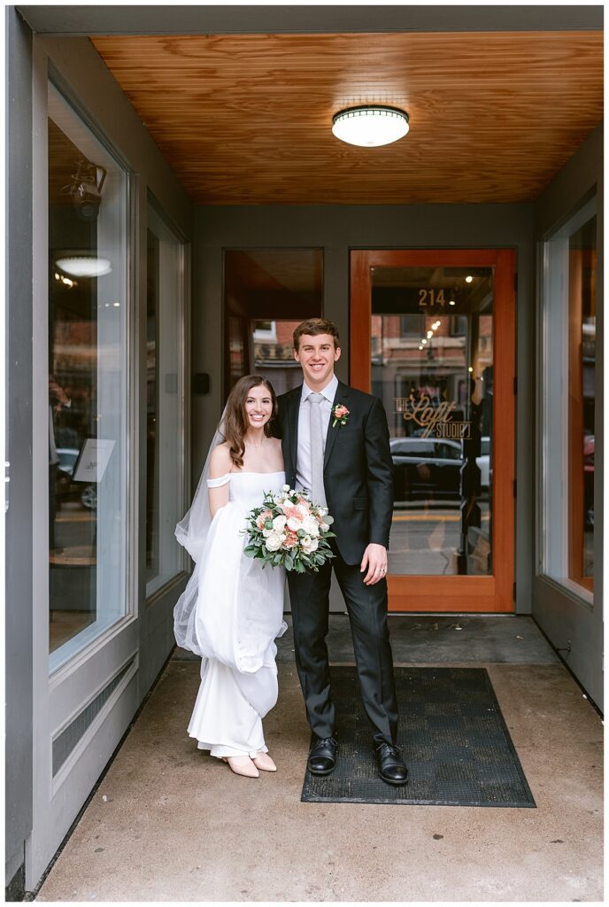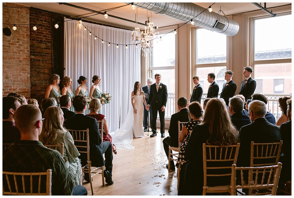 Vendors for the day included:: Ceremony and Reception:: The Loft at Studio J// Florist:: Lakeside Floral // Wedding Dress:: A&be Bridal // Hair and Makeup:: Spa Beauty Agency // Bridesmaids Dresses:: Kaia Sage Dress from Birdy Grey // Mens’ Ware:: Atmosfere // Rings:: Engagement Ring :: James Allen, Sophia Wedding Band :: Wedding Day Diamonds & Teddy Wedding Band :: Manly Bands // Caterer:: Bella Vida // DJ: Day One DJ // Baker: Cakealicious: //