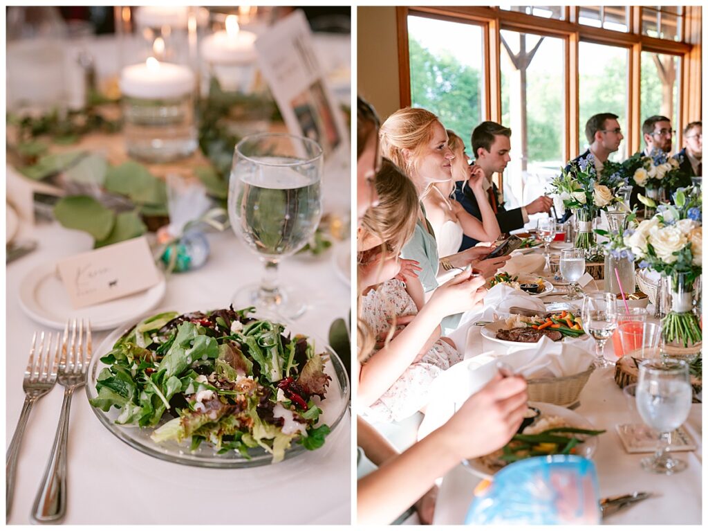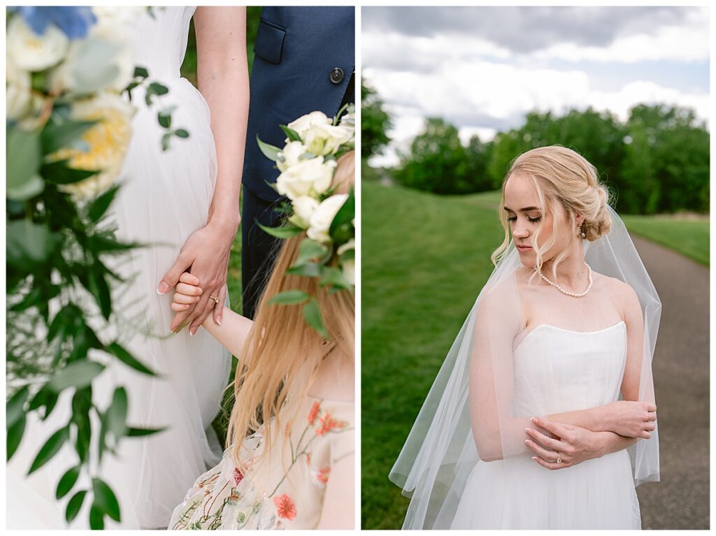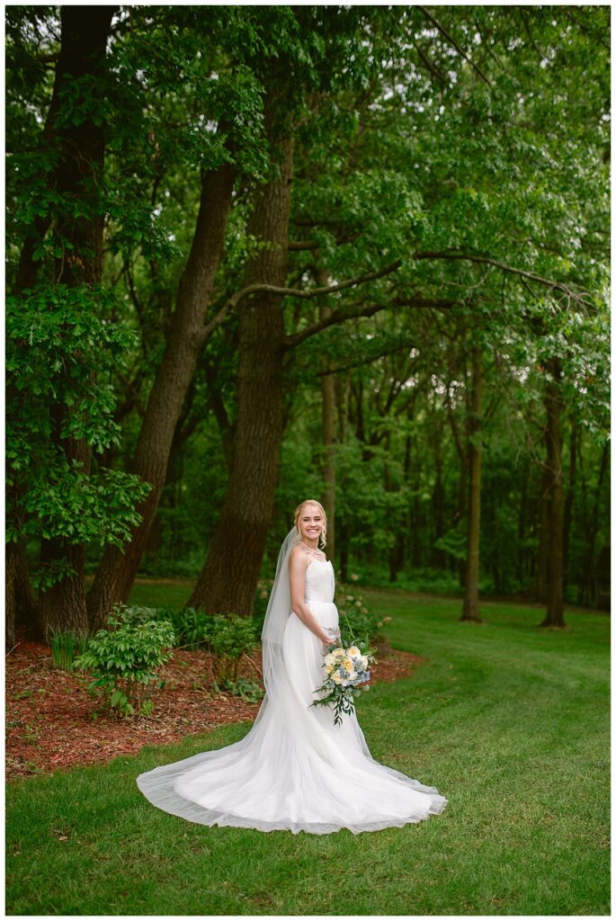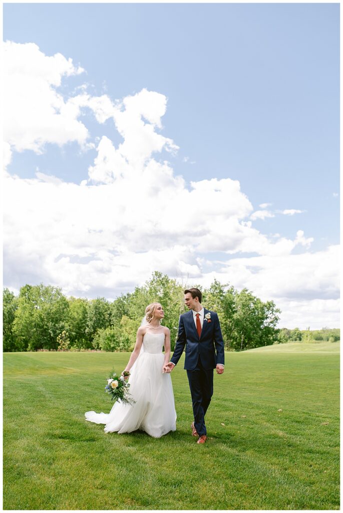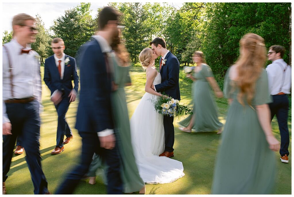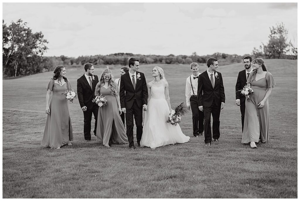 Vendor Team That Made the Day Happen// Venue & Catering: The Refuge Golf Club // Ceremony Site: First Baptist Church of St. Francis // Hair: Amber Ripka – Be Lovely by Amber Ann// Make-Up: Done by the bride // Florals: Georgia Edgington – Petals to Pines Floral of 101 Market // Cake: Hy-Vee of Brooklyn Park // DJ/Band: Jessica Shaw – Bellagala // Stationery: Vistaprint // Wedding Dress: Custom-made by Nancy Lindquist // Bridesmaid Dresses: Baltic Born // Shoes: Sézane (France) // Rings: Thurber Jewelers, Elk River, MN // Earrings & Necklace: Family Heirlooms