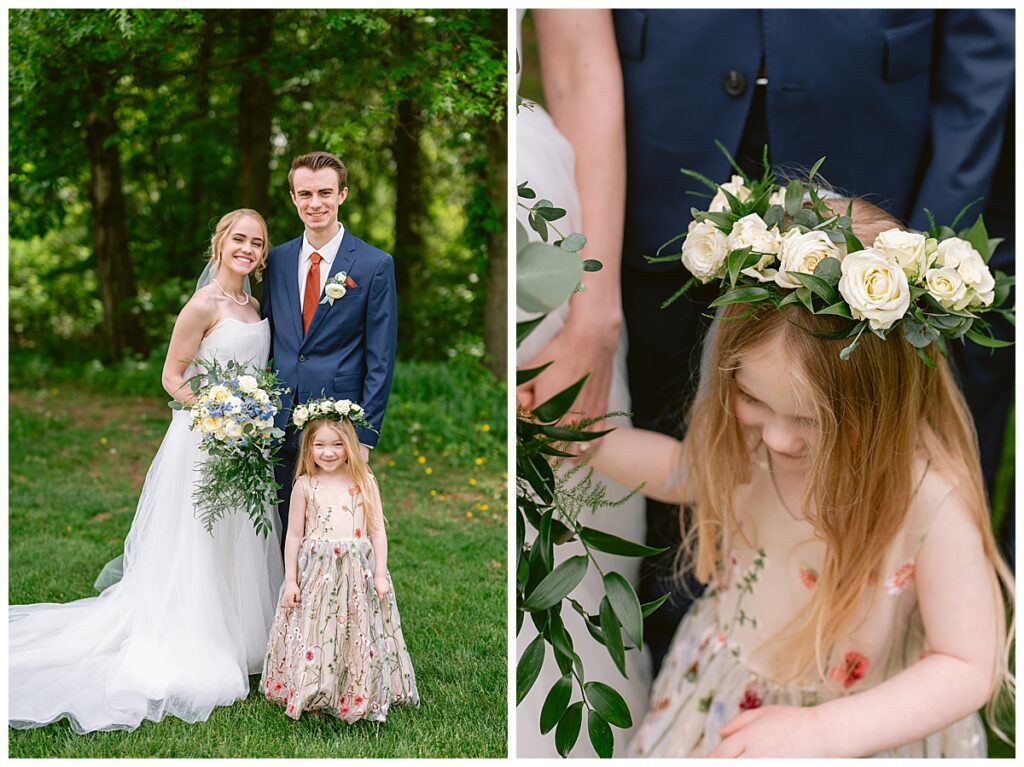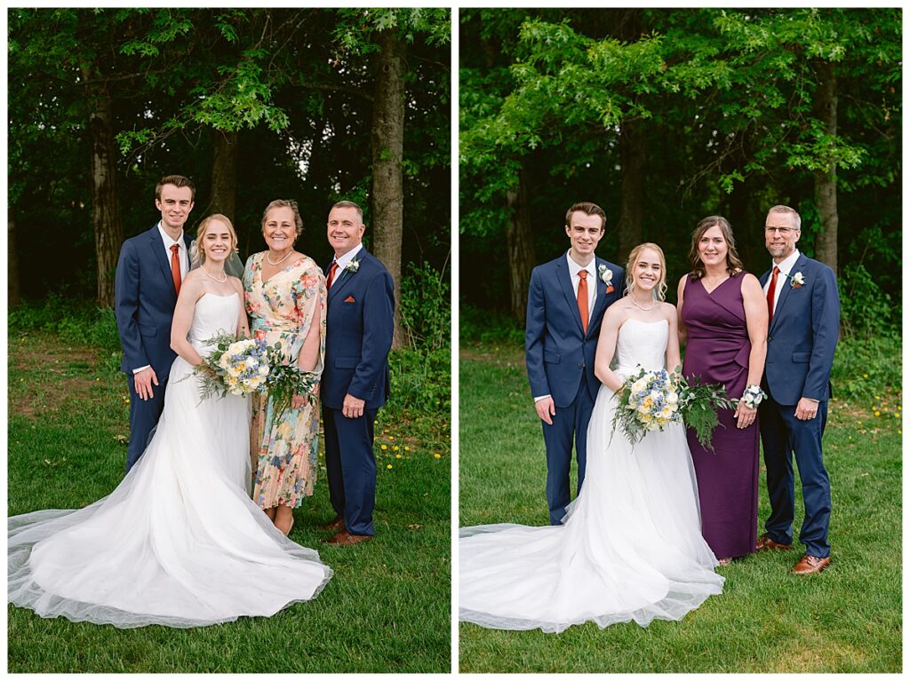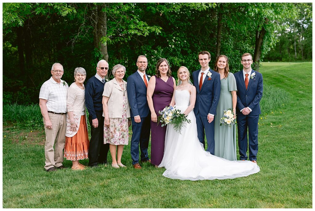 Josh and Marina shared their first look under a peaceful grove of trees, a quiet and emotional moment that allowed them to take in the significance of the day. This was followed by wedding party photos and family portraits—complete with seven grandchildren under the age of four, bringing an extra dose of joy and energy to the day.