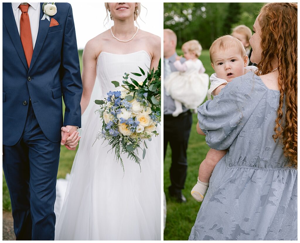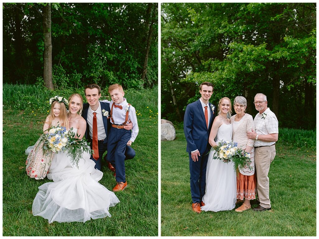 After their sweet first look, Josh and Marina were joined by their wedding party and families for photos. The energy was joyful and relaxed, with siblings joking around, lifelong friends cheering them on, and seven grandbabies under the age of four stealing the show. It was beautifully chaotic in the best way—just the kind of moments that reflect what matters most. With every photo, you could feel how deeply loved Josh and Marina are, and how much support surrounds them as they begin their life together.