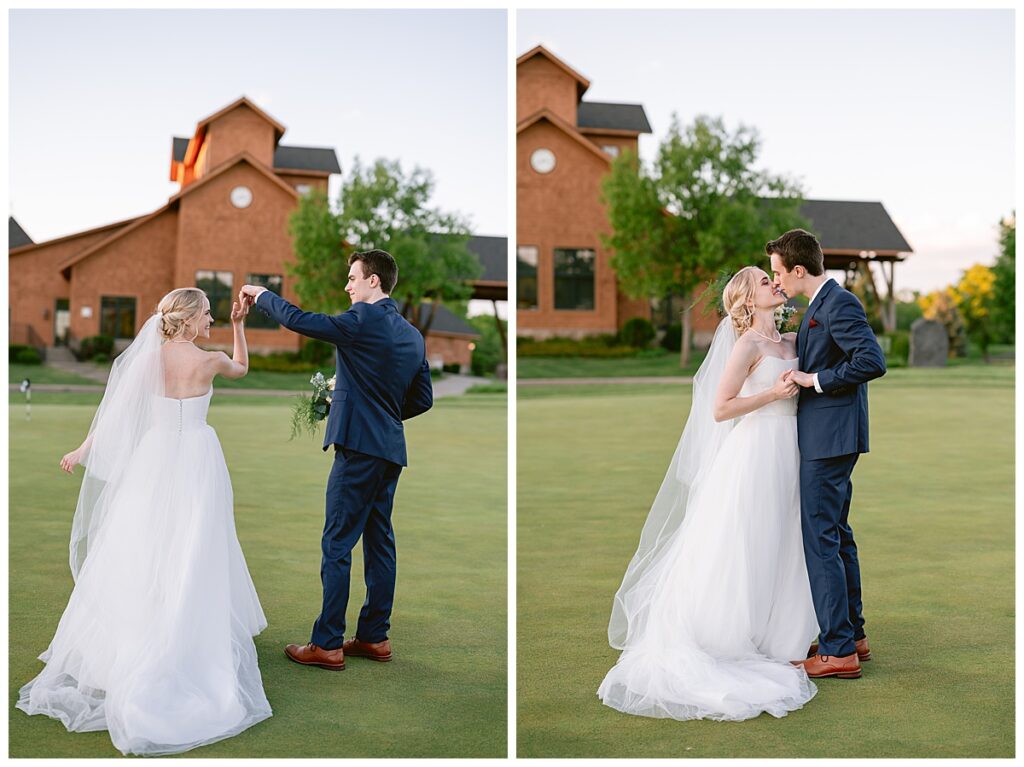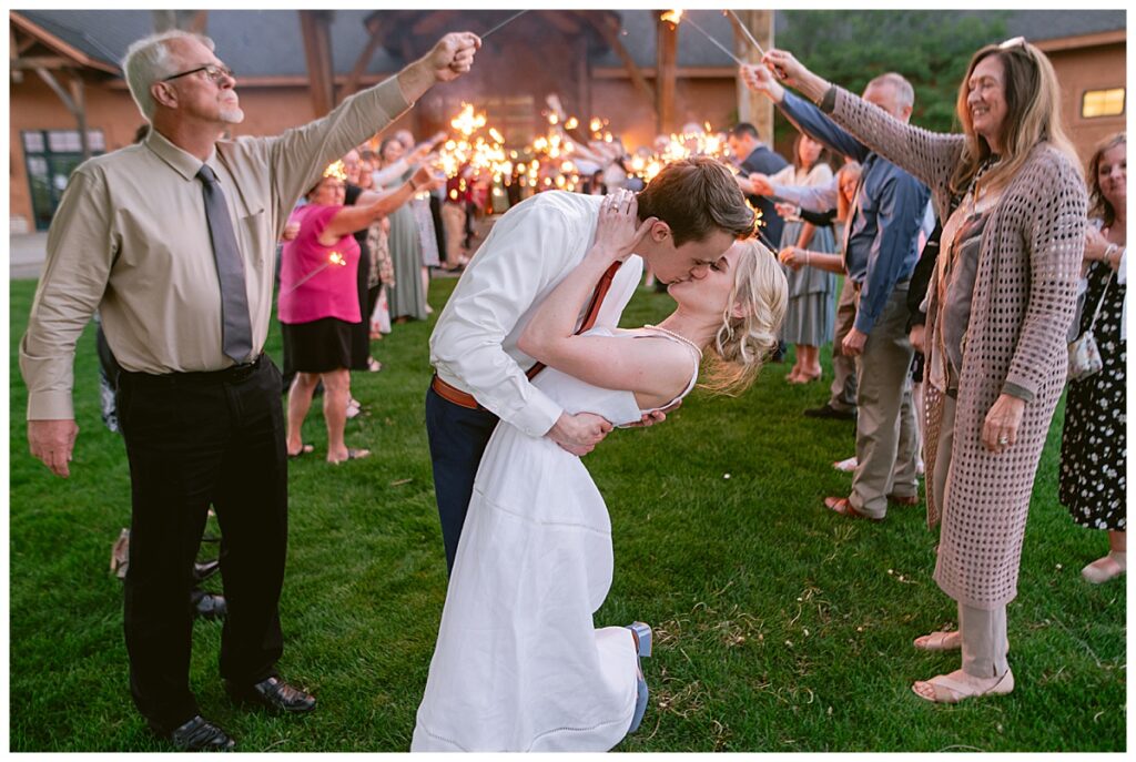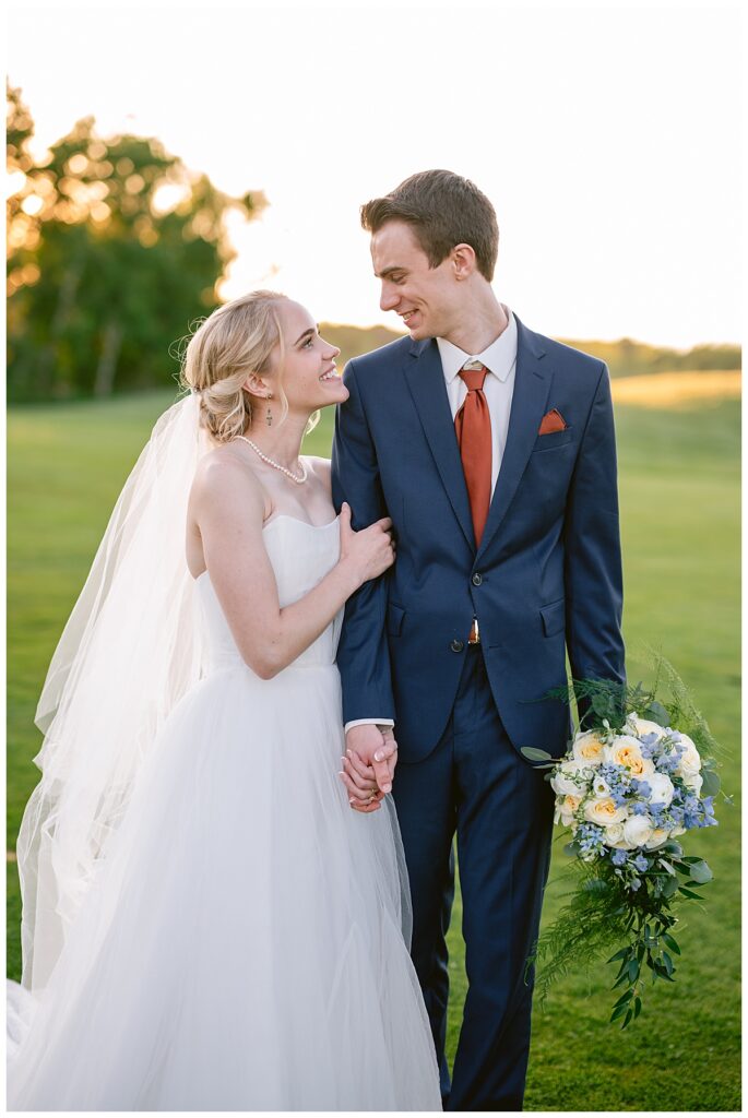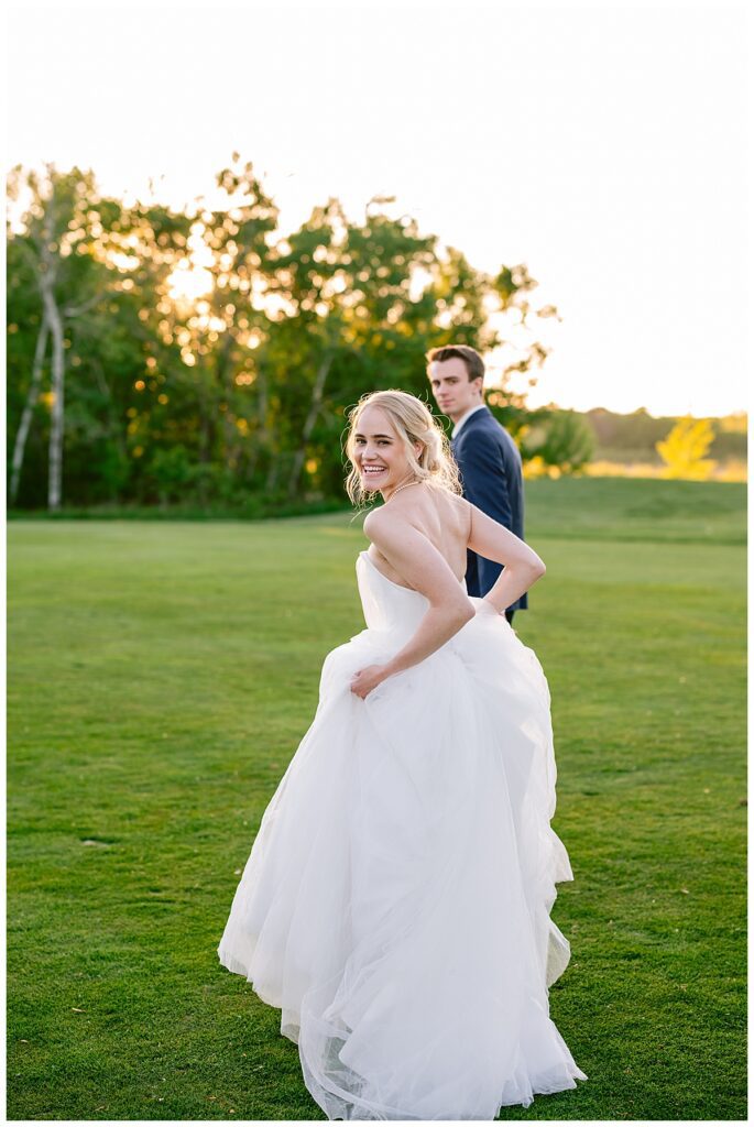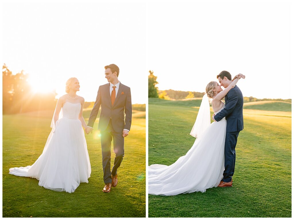 As the sun dipped low and cast its golden light over the golf course, we snuck out for a few final portraits. Golden hour was absolutely delicious—warm, glowy, and romantic in all the right ways. Josh and Marina embraced, laughed, and soaked up the last light of their wedding day with ease. It was the perfect pause before the sparkler exit, and a magical way to close out a day so full of heart. This quiet, glimmering time together gave them space to just be present—and those photos turned out to be some of the dreamiest of the whole day.