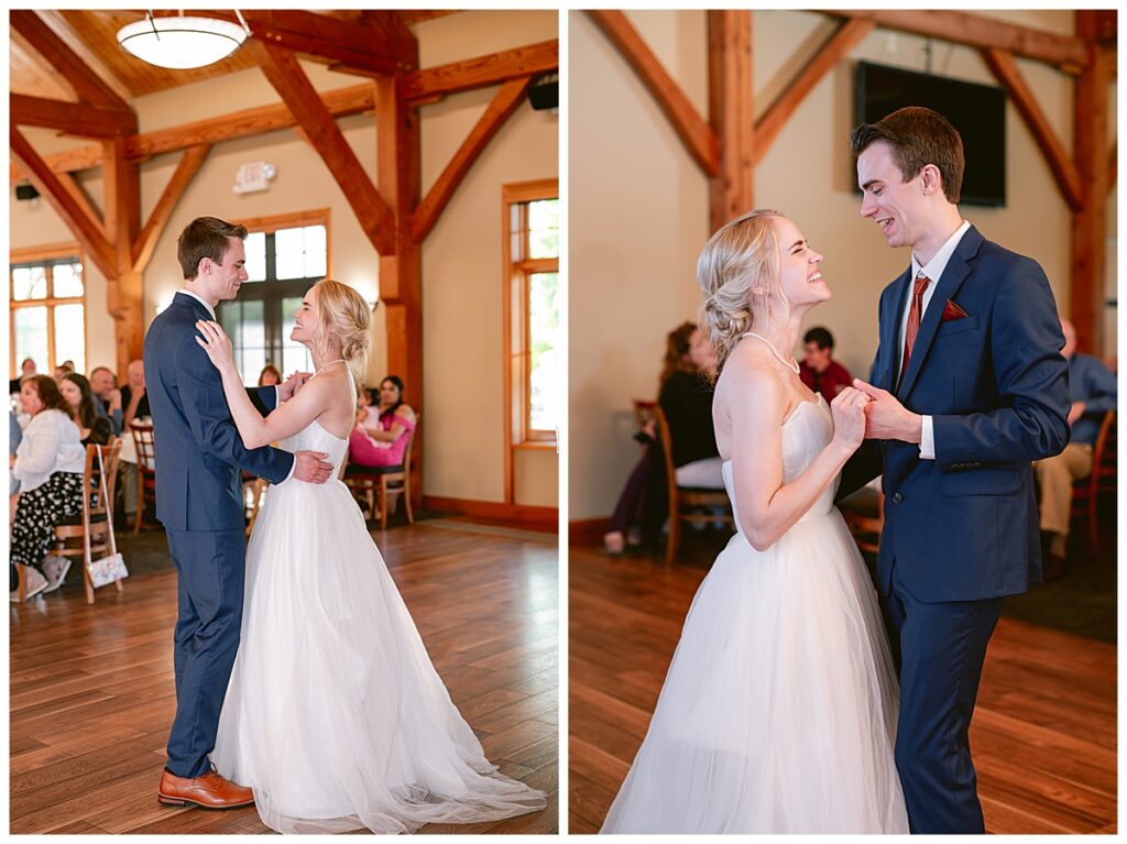 The celebration continued at The Refuge Golf Club, where guests enjoyed dinner catered by the venue and a night of dancing. The reception space featured romantic floral arrangements by Petals to Pines Floral, and music was provided by Jessica Shaw of Bellagala, who kept the dance floor lively throughout the night. Their cake, beautifully done by Hy-Vee of Brooklyn Park, was both delicious and picture-perfect.