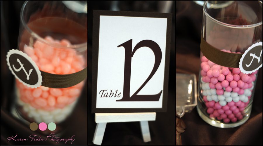 I came to know that Lisa loves pink. And she did an amazing job accentuating it throughout the details of the day. Pinks were in the candy jars at the tables. My wonderful assistant, Elena, did a fabulous job capturing the entirety of the room at Bearpath.
