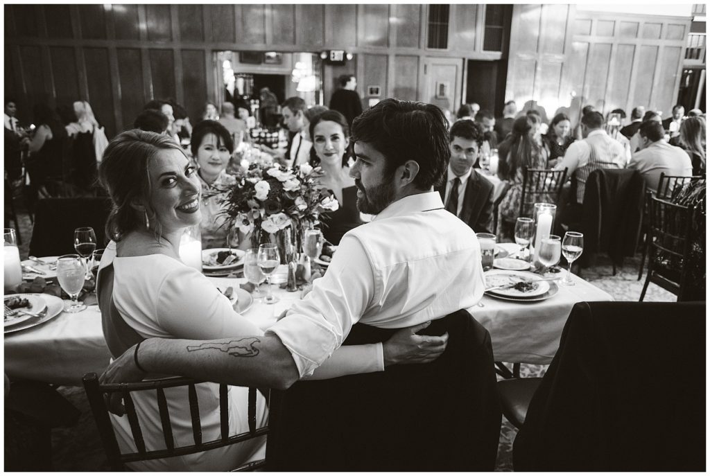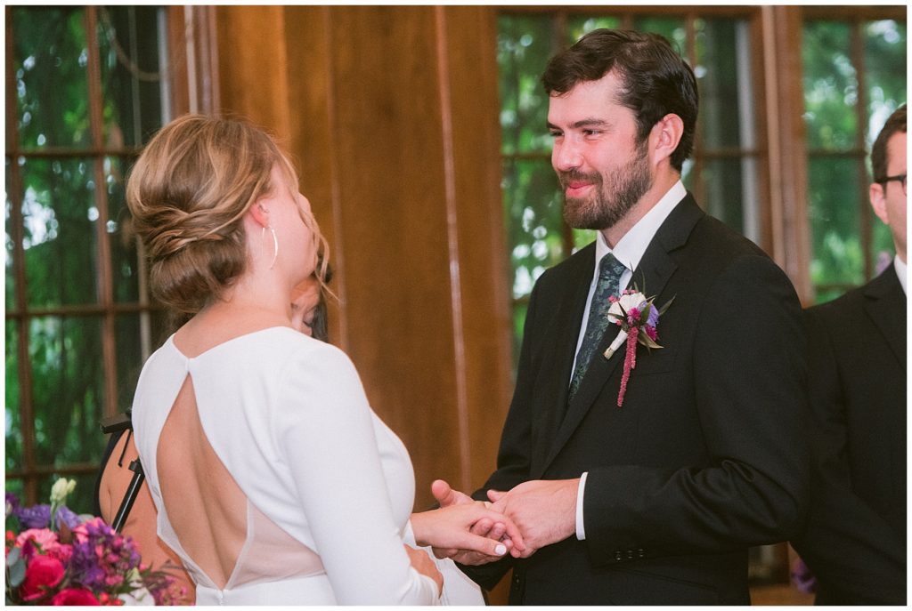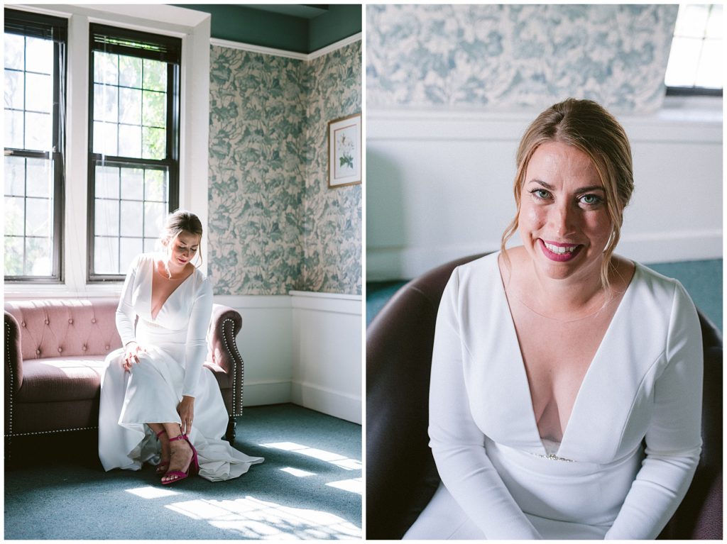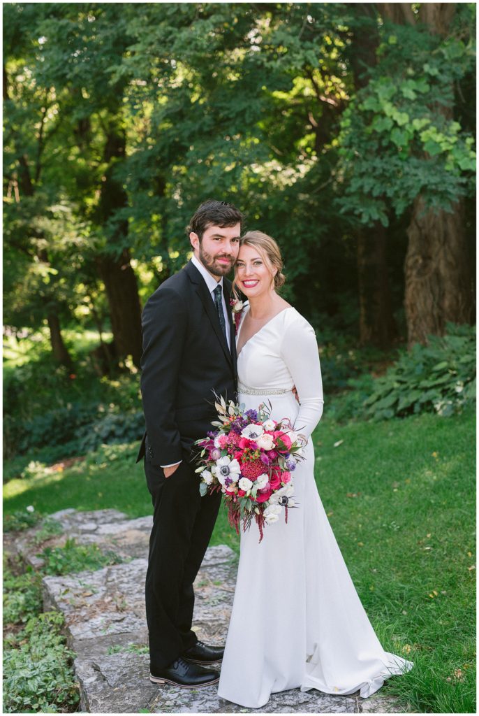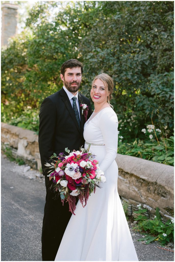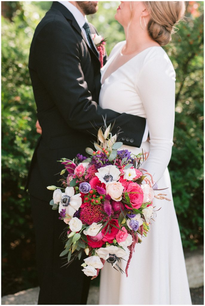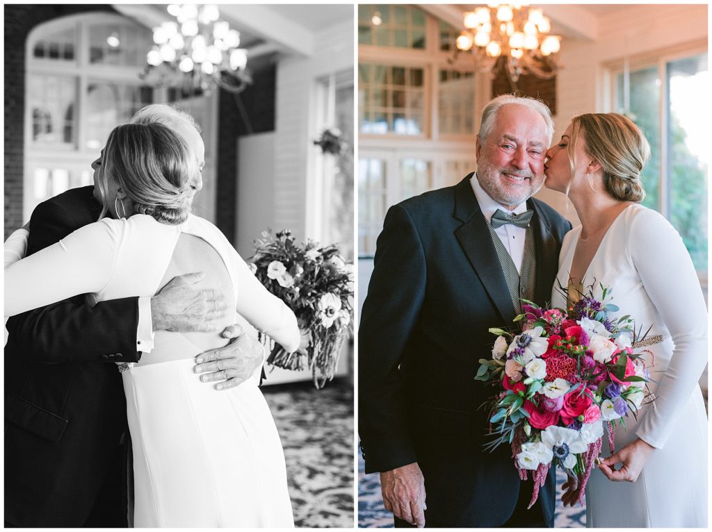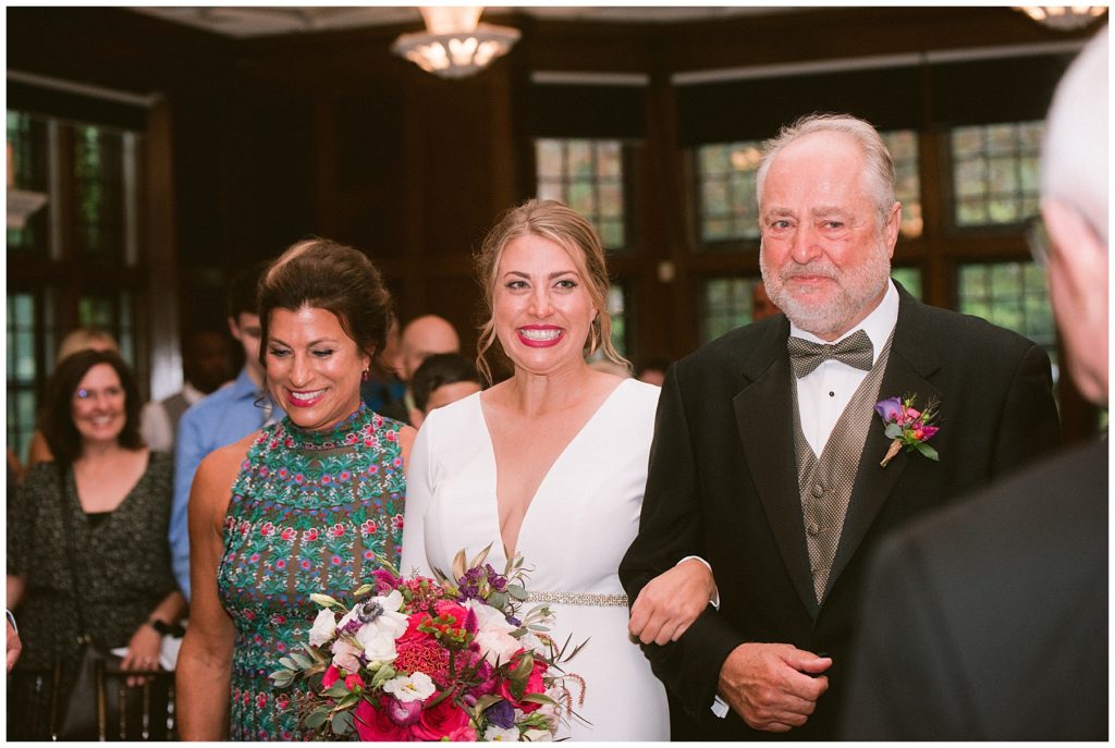 Their September wedding day was beautiful. The two wanted only close friends and family to join their intimate ceremony so they could spend quality time with everyone. Elizabeth’s long sleeve Jenny Yoo gown was classic and elegant and perfect for the wedding day. Her bouquet from La Petite Fleur held hues of pinks, greens and whites and was stunning against her dress and her pink shoes added the perfect pop of color. April of Evergreen Weddings planned each and every detail perfectly and had the reception room looking amazing. The two had so many perfect details to the day including geo name places that were hand scripted with each guest’s name.