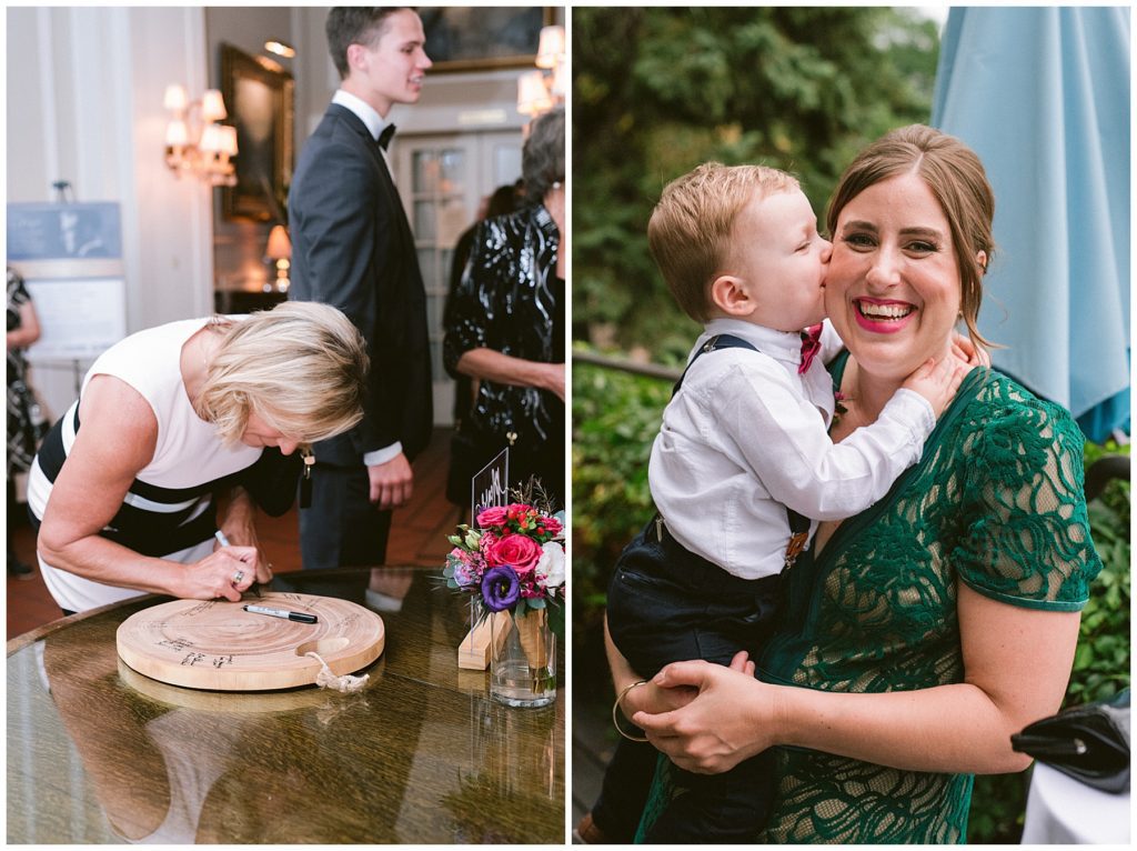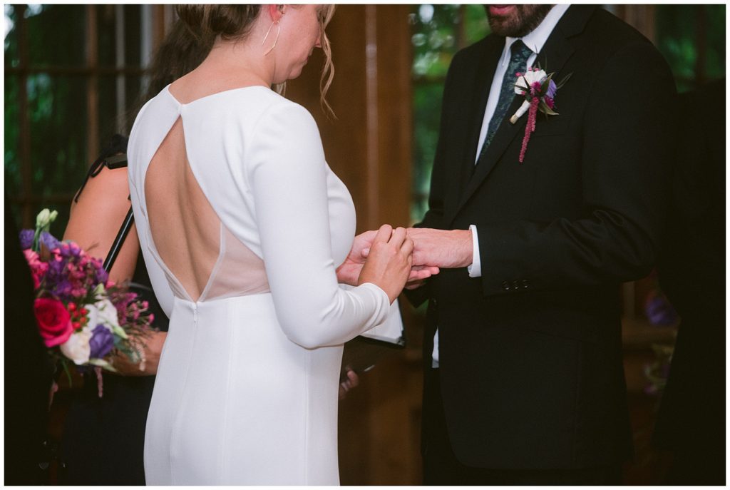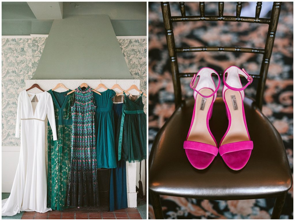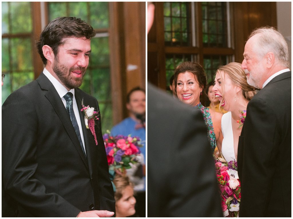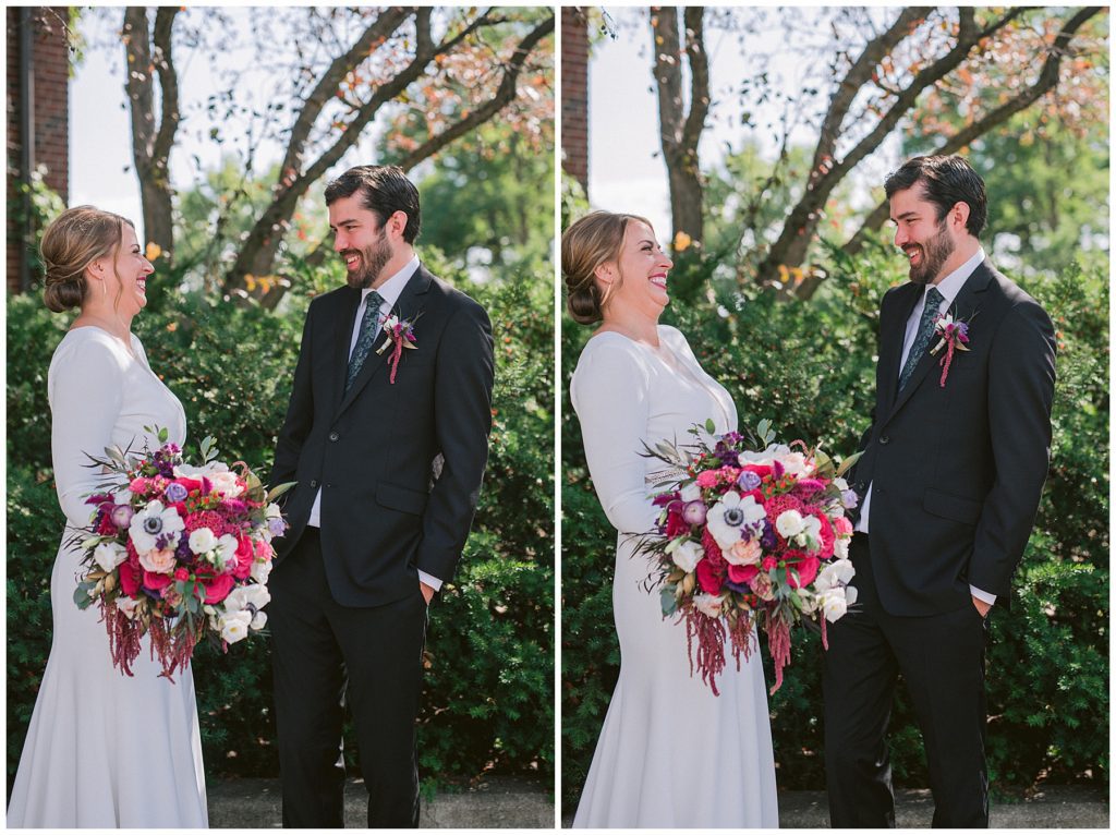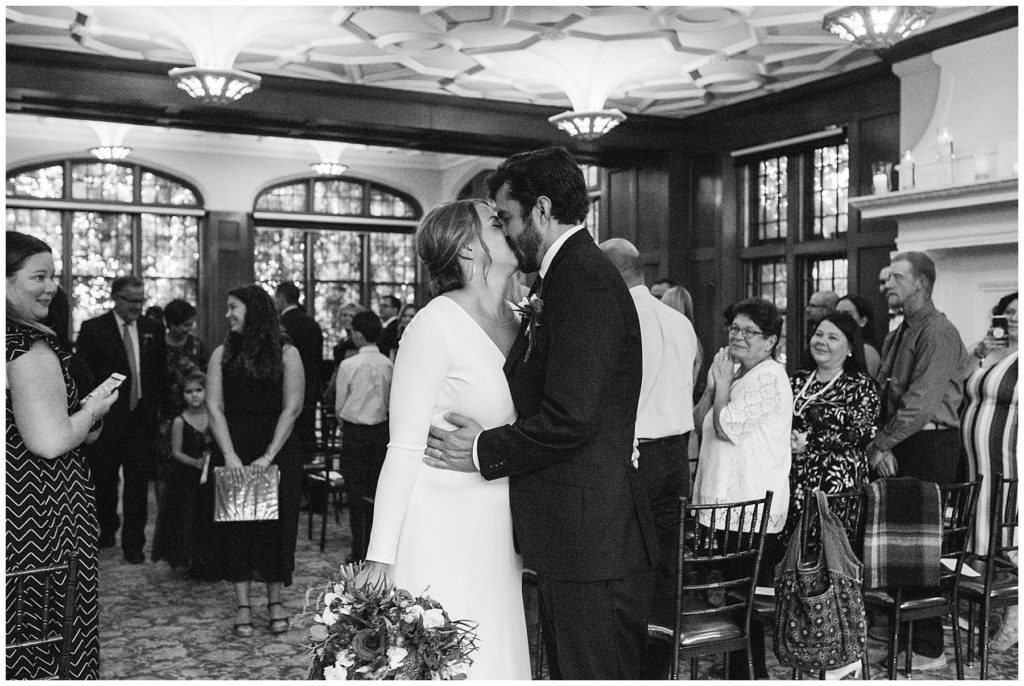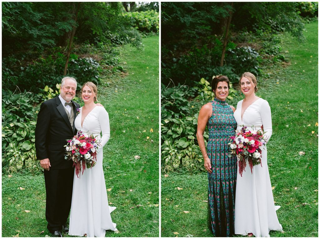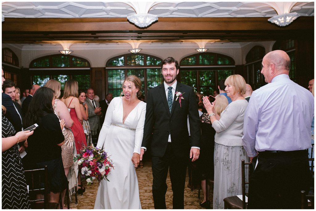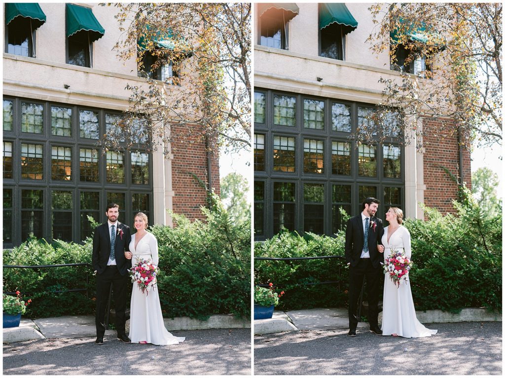 Their September wedding day was beautiful. The two wanted only close friends and family to join their intimate ceremony so they could spend quality time with everyone. Elizabeth’s long sleeve Jenny Yoo gown was classic and elegant and perfect for the wedding day. Her bouquet from La Petite Fleur held hues of pinks, greens and whites and was stunning against her dress and her pink shoes added the perfect pop of color. April of Evergreen Weddings planned each and every detail perfectly and had the reception room looking amazing. The two had so many perfect details to the day including geo name places that were hand scripted with each guest’s name.