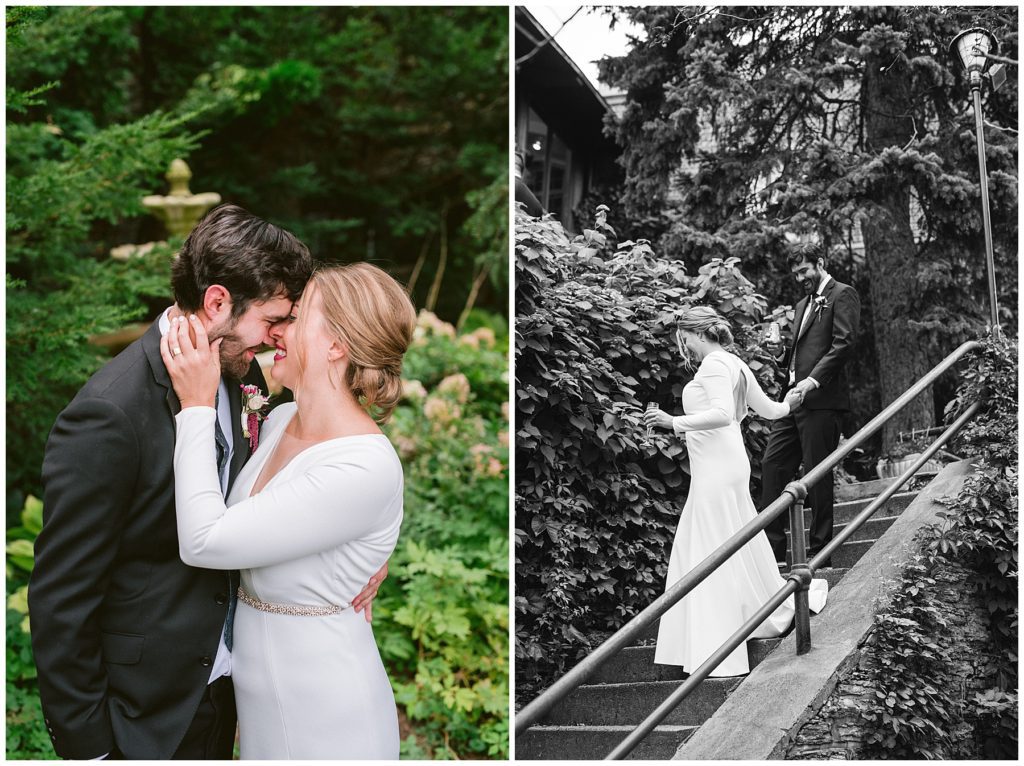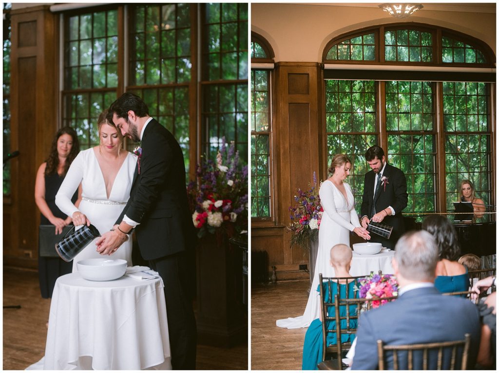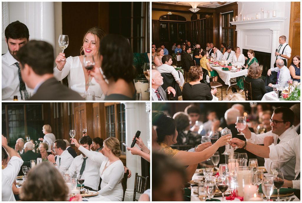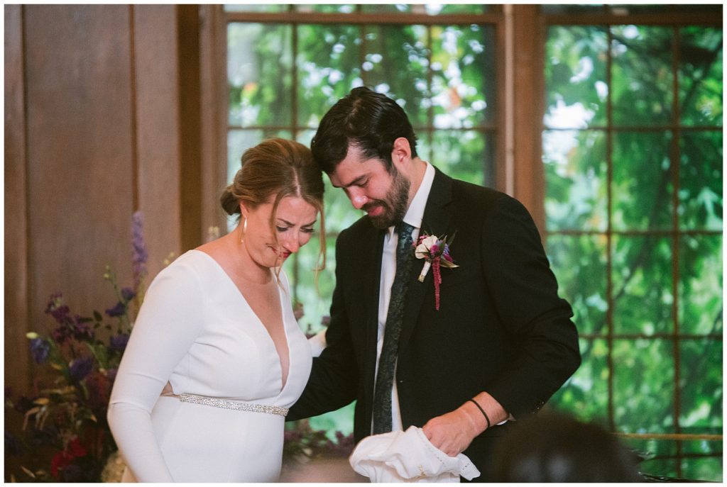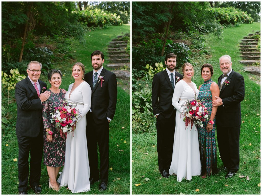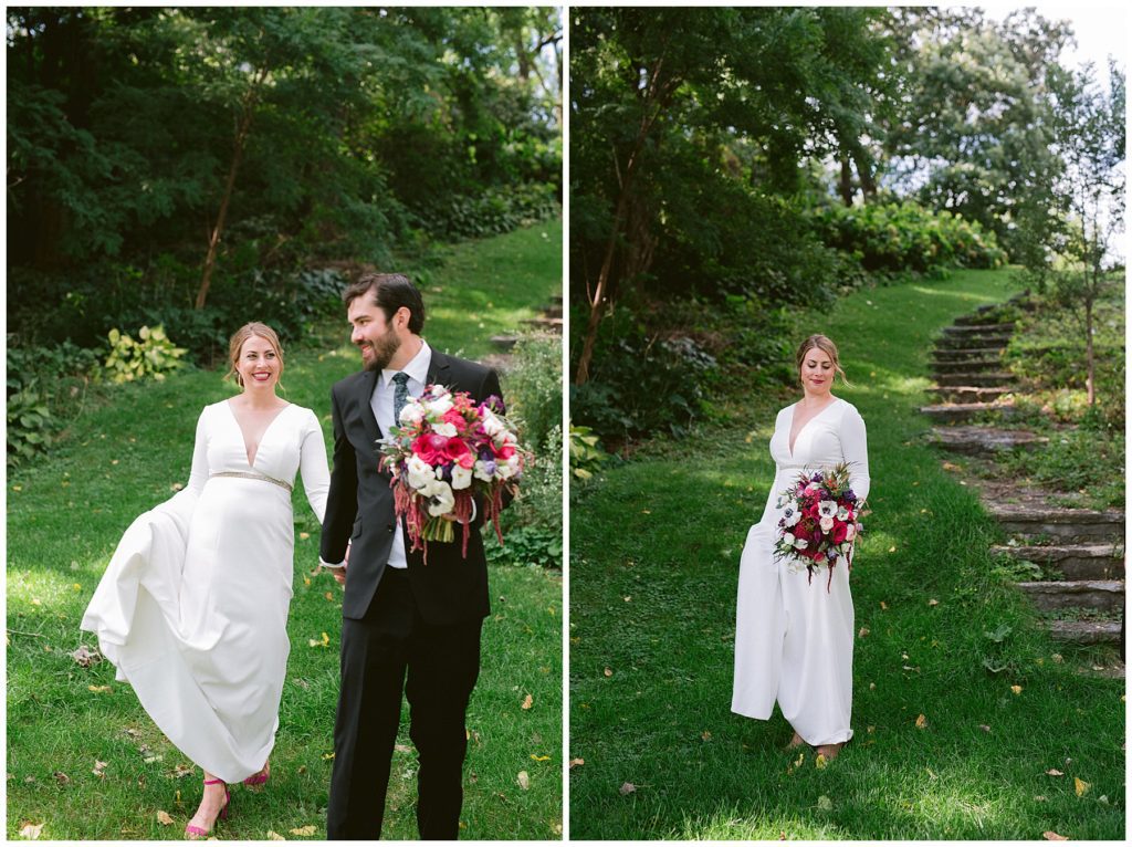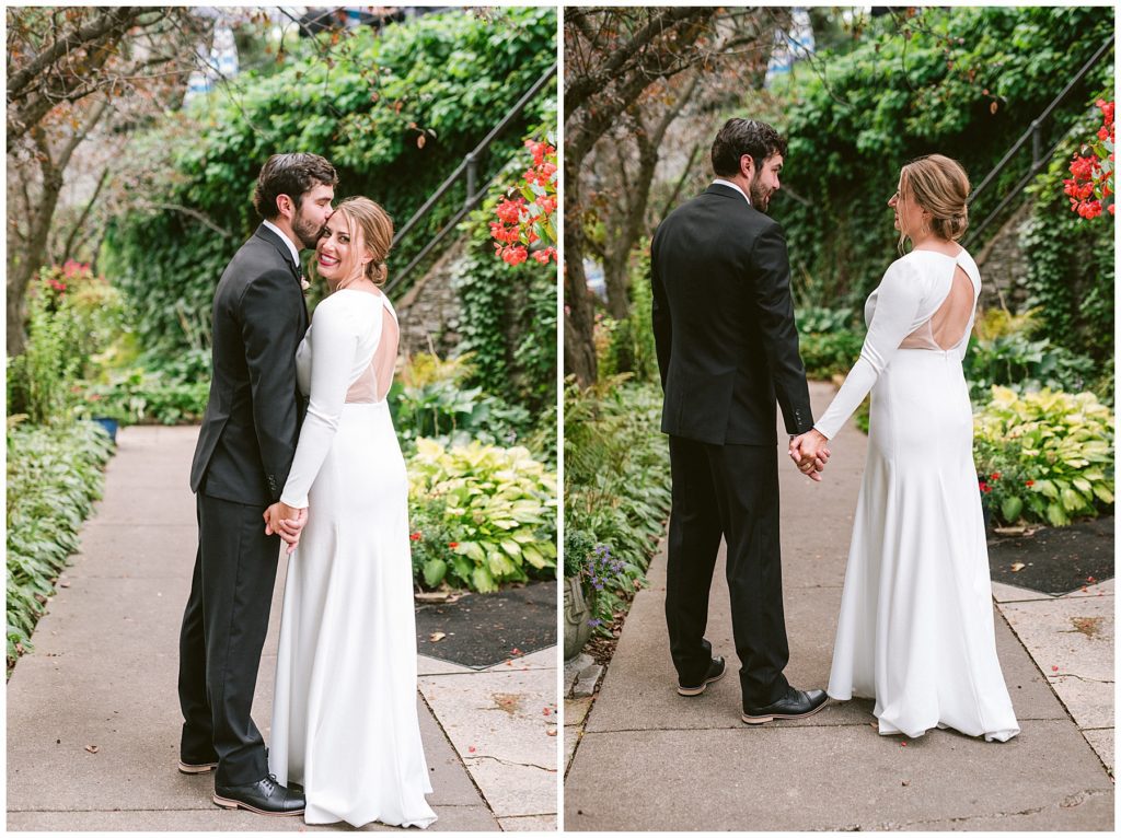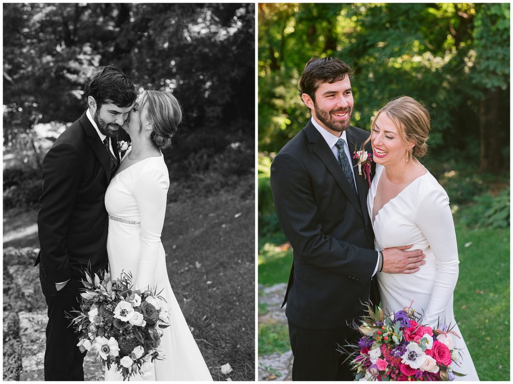 Their September wedding day was beautiful. The two wanted only close friends and family to join their intimate ceremony so they could spend quality time with everyone. Elizabeth’s long sleeve Jenny Yoo gown was classic and elegant and perfect for the wedding day. Her bouquet from La Petite Fleur held hues of pinks, greens and whites and was stunning against her dress and her pink shoes added the perfect pop of color. April of Evergreen Weddings planned each and every detail perfectly and had the reception room looking amazing. The two had so many perfect details to the day including geo name places that were hand scripted with each guest’s name.