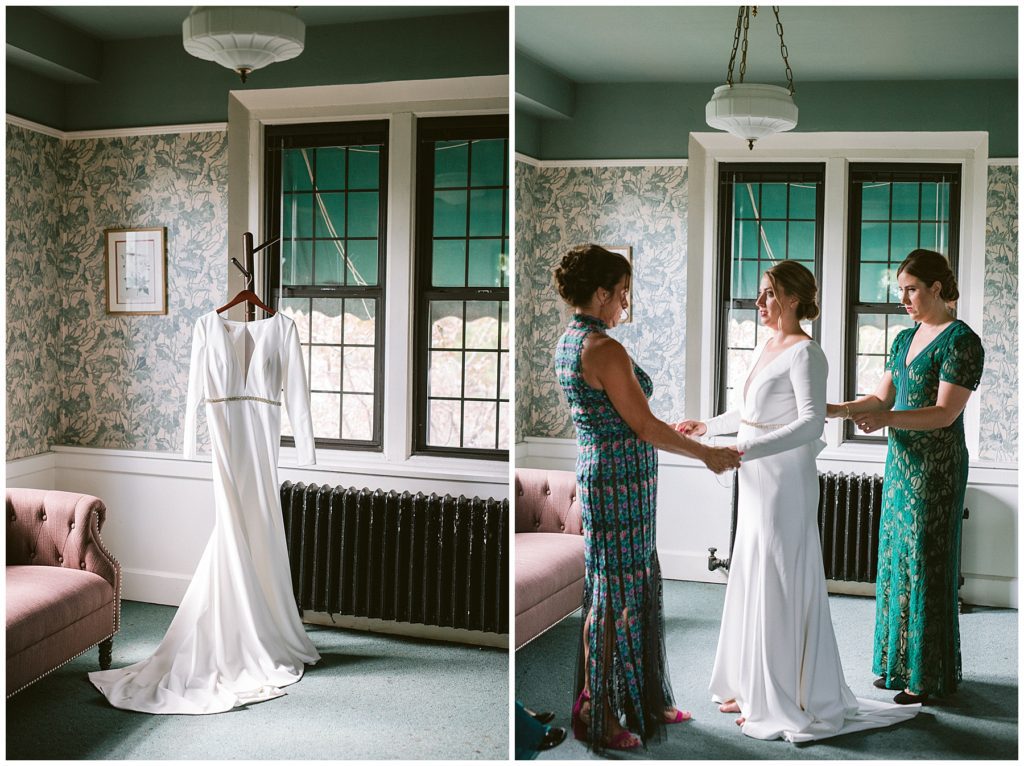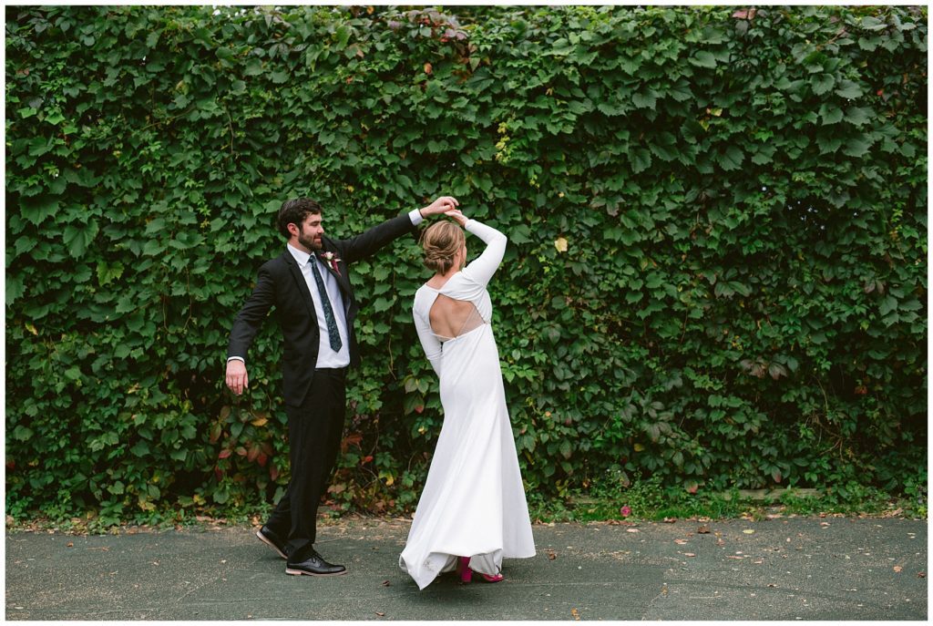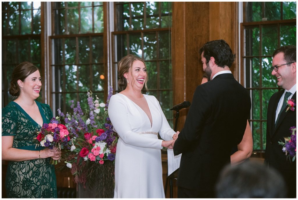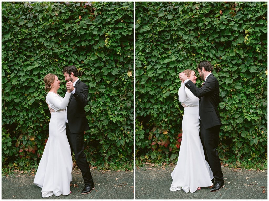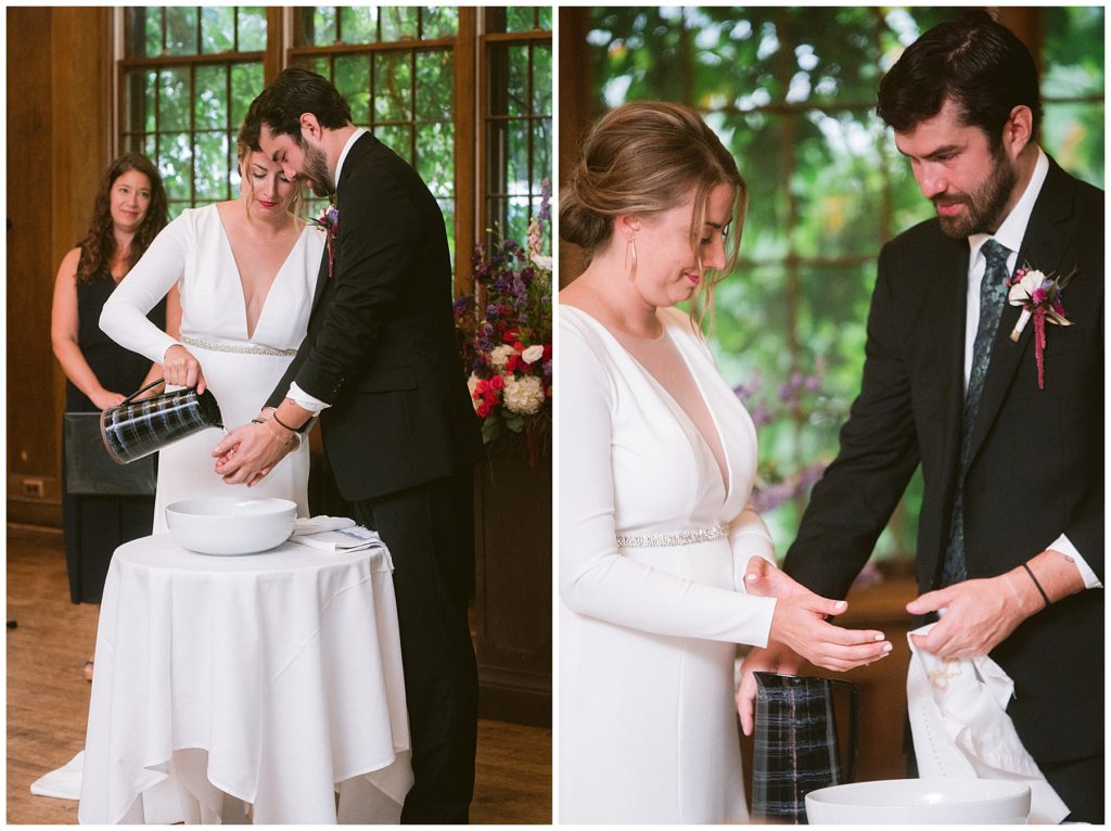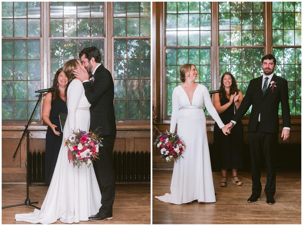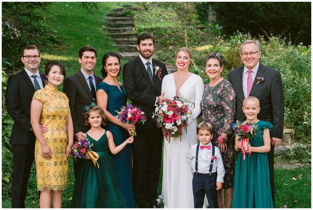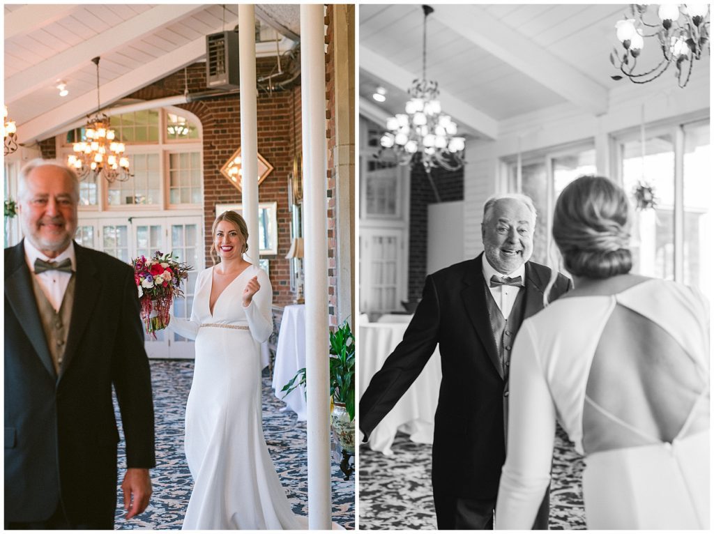 Their September wedding day was beautiful. The two wanted only close friends and family to join their intimate ceremony so they could spend quality time with everyone. Elizabeth’s long sleeve Jenny Yoo gown was classic and elegant and perfect for the wedding day. Her bouquet from La Petite Fleur held hues of pinks, greens and whites and was stunning against her dress and her pink shoes added the perfect pop of color. April of Evergreen Weddings planned each and every detail perfectly and had the reception room looking amazing. The two had so many perfect details to the day including geo name places that were hand scripted with each guest’s name.