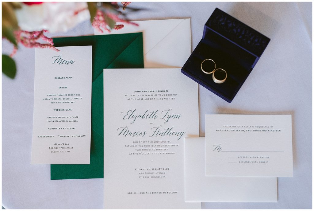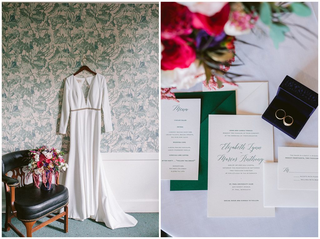 Vendors for the day included:: Ceremony and Reception:: The University Club of Saint Paul// Hair:: Taylor Diebel // Make-up:: Sarah Benepe // Florist:: Cara Otten of La Petite Fleur // Wedding Dress: Jenny Yoo purchased at Flutter Boutique // //Rings:: Charlemagne Fine Jewelry // Men’s Ware:: Atmosphere // Catering:: University Club of Saint Paul // Baker:: Buttercream // Band:: Kathryn Knuttila Karg and Andy Karg; 2gether Productions // Month of Planner:: April Long of Evergreen Weddings // Stationary:: Dick and Jane Letterpress