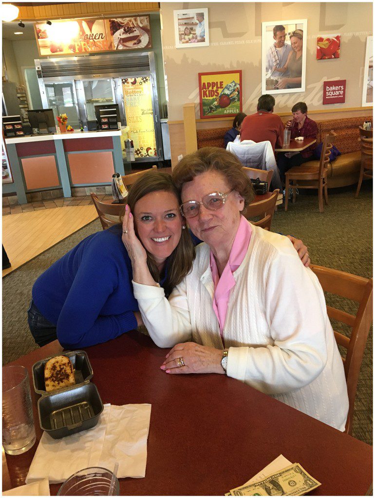Now on a pretty weekly basis we take one day to go shopping together, hit up the library, run other errands, and just be together. After a morning of running, we always seem to end up at Baker’s Square for lunch with talk of my grandpa, her kids, my kids, politics, work, the weather, and anything else that might present itself. It is a sweet and precious time to me because not only does she shed light on to the person of who I am, but she also inspires me that even at 80 years old, change and growth can still happen.