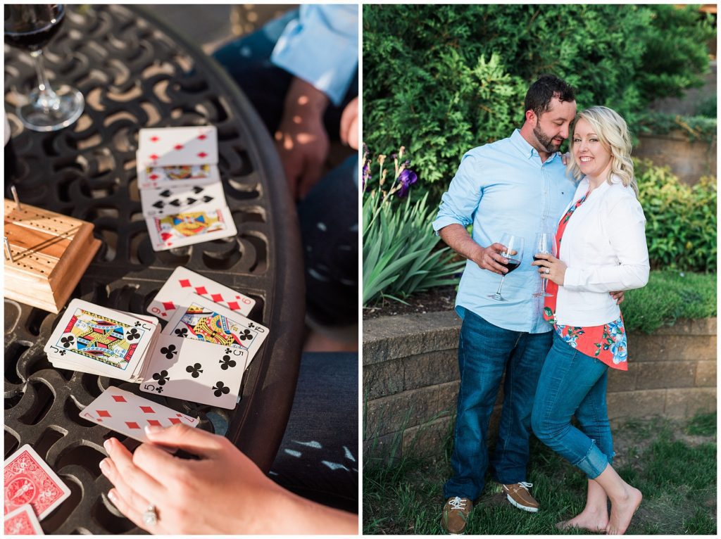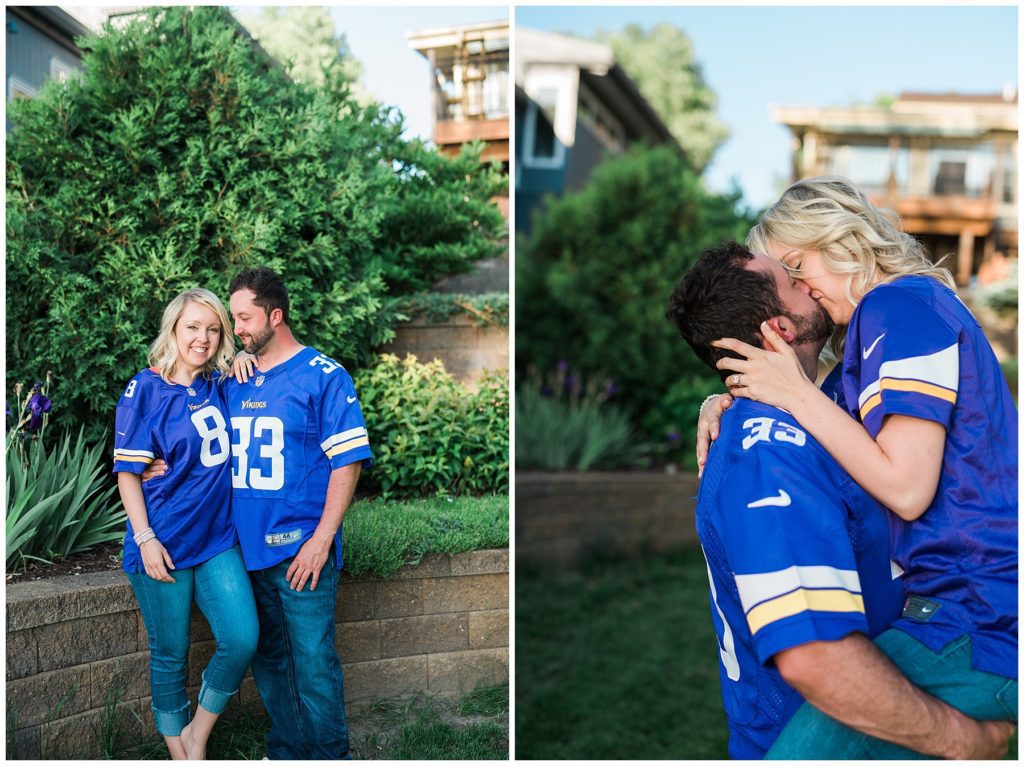 She grew up on the lake, so naturally White Bear Lake was the location for Nick and Keara’s engagement session. We started off in the beautiful downtown area on a perfect summer evening. After working our way around both urban and natural landscapes, we headed to her mom’s home to relax on the lake and capture something Nick and Keara love, cribbage and drinking wine! They even slipped on some Vikings jersey’s toward the end of their session to celebrate one other thing they love…Vikings football! I can not wait to spend New Years Eve with them!