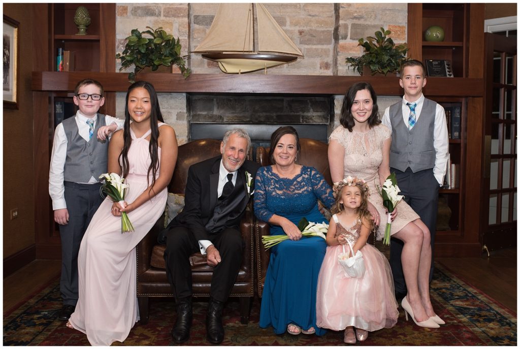 After photos outdoors, the family headed to White Bear Country Inn, where the intimate group of family and friends witnessed John and Margaret vow their lives to one another. Margaret chose an elegant royal blue evening gown as her wedding dress while her daughters chose blush toned dresses from Rent the Runway and David’s Bridal to compliment her gown as they stood by her side. White lily’s were the flower of the wedding day and John’s grandsons wore suits and ties as they stood in support of their grandfather’s wedding day. It couldn’t have been a more joy-filled day celebrating the love between John and Margaret.
