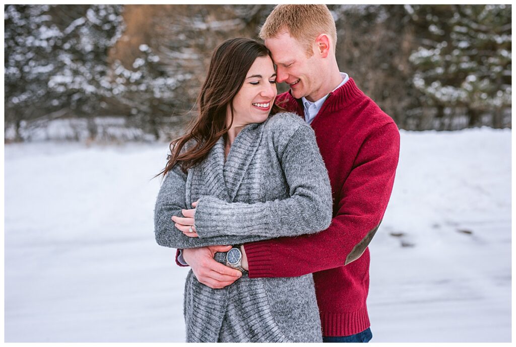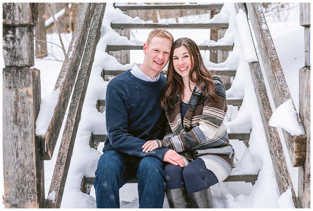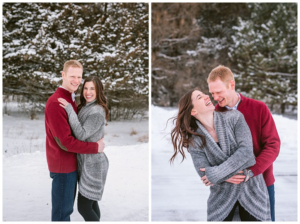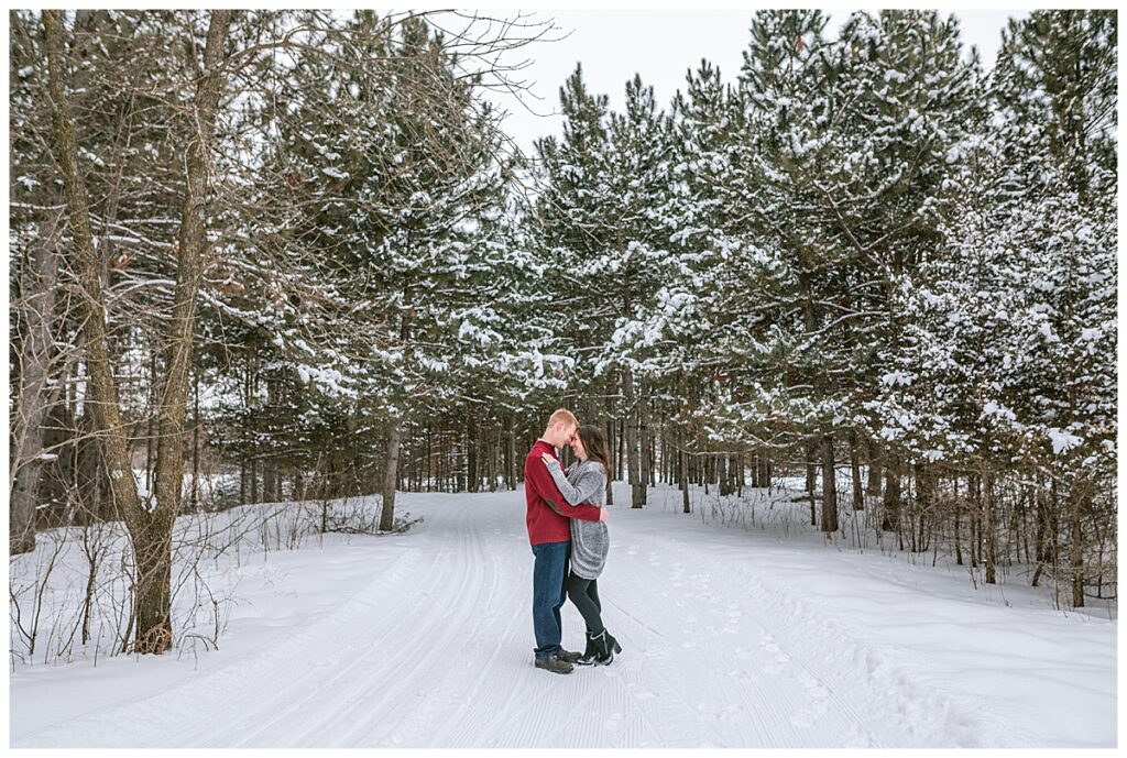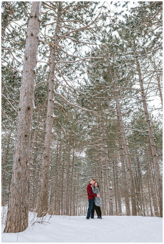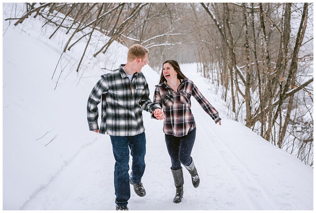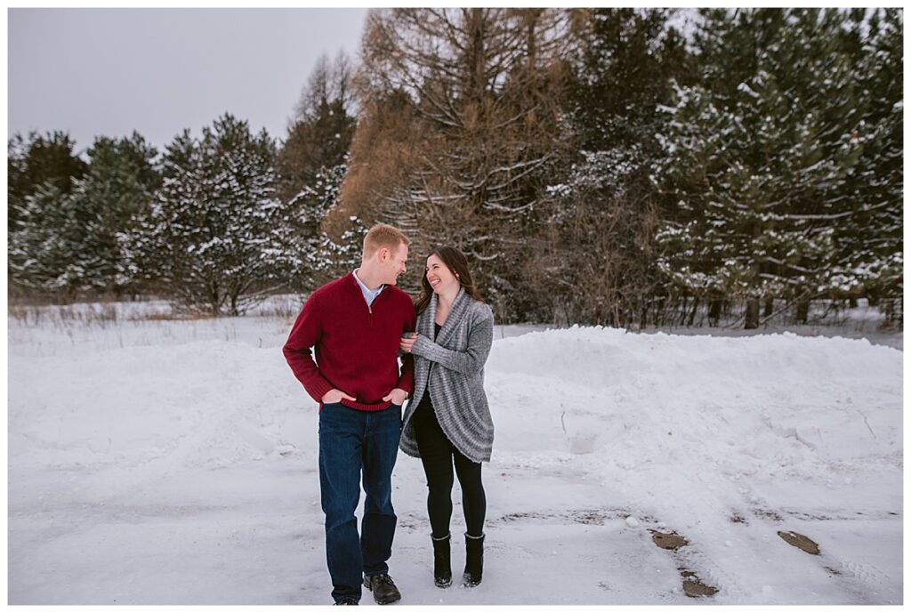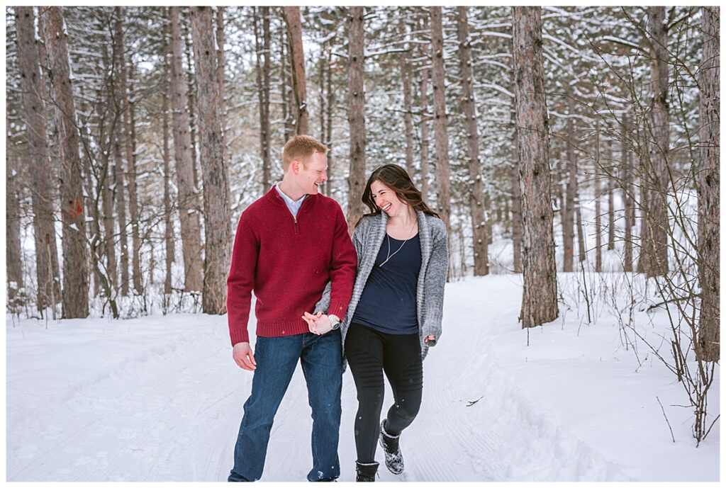 Being lovers of the outdoors and hiking, Willow River State Park in Wisconsin seemed to be the perfect location for Sara and Brandon’s winter engagement session. The freshly fallen snow provided the most beautiful backdrop for us as we walked on some of their favorite trails talking about their engagement as well as how they hope their wedding day to look.