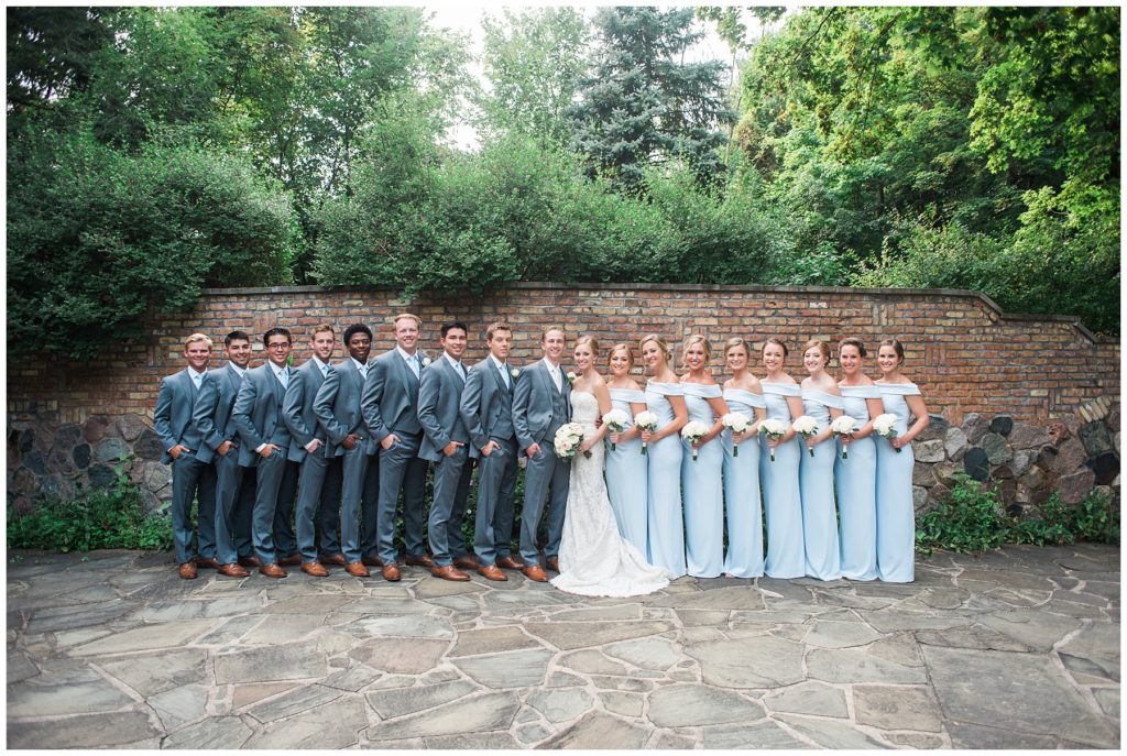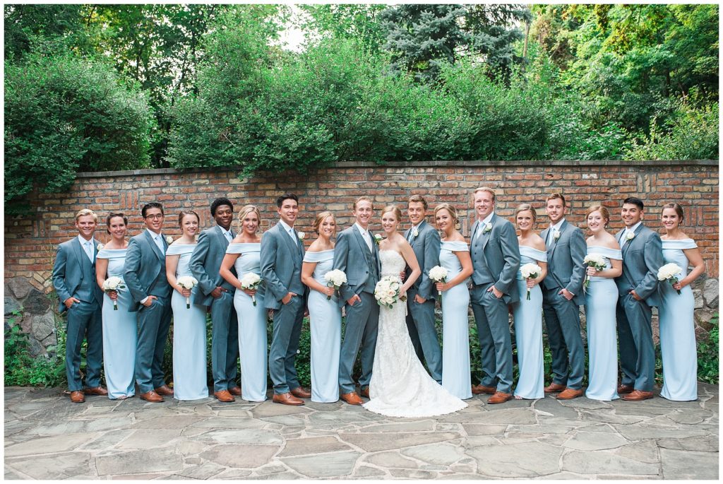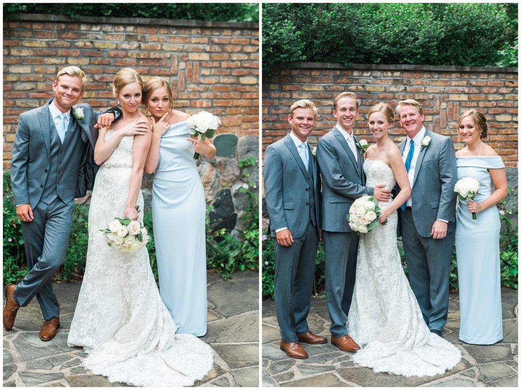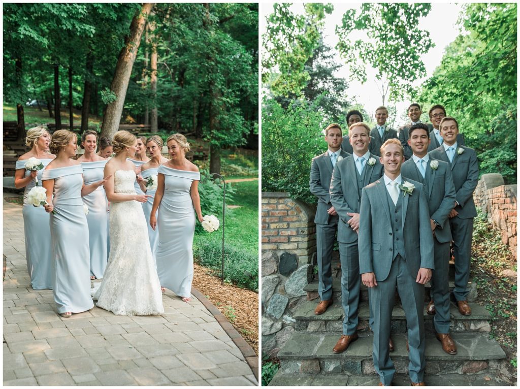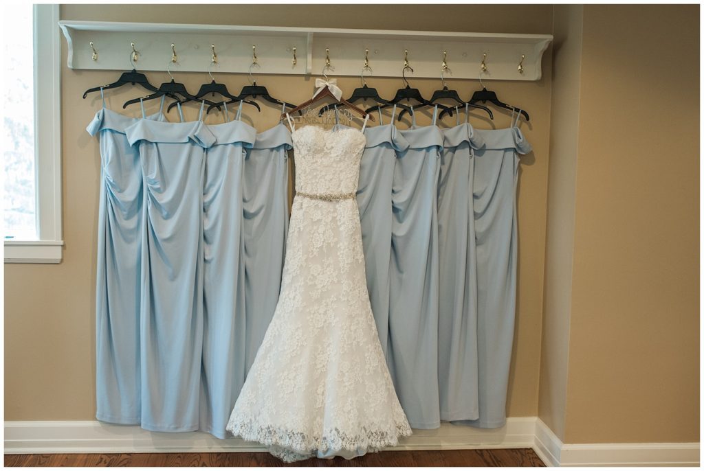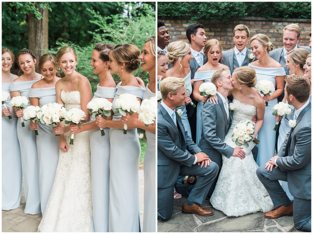The Vince Camuto periwinkle bridesmaid dresses from Macy’s popped when up put up against the gray Engara suits that the groomsmen wore from Men’s Warehouse.