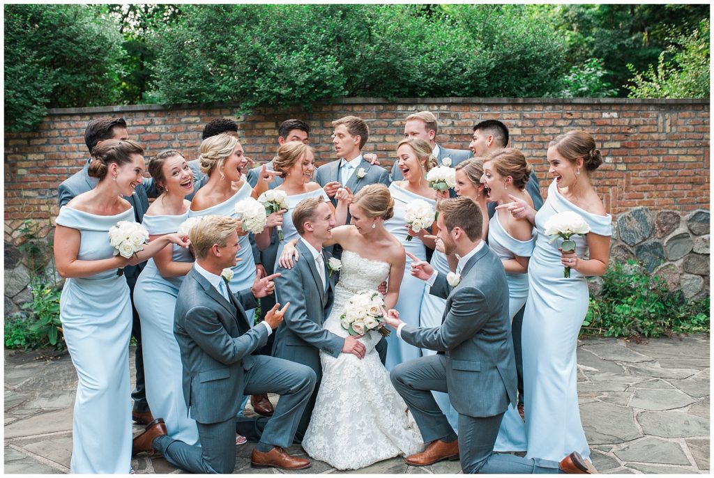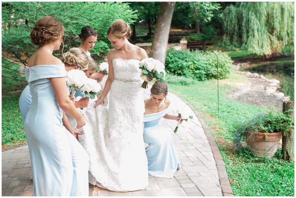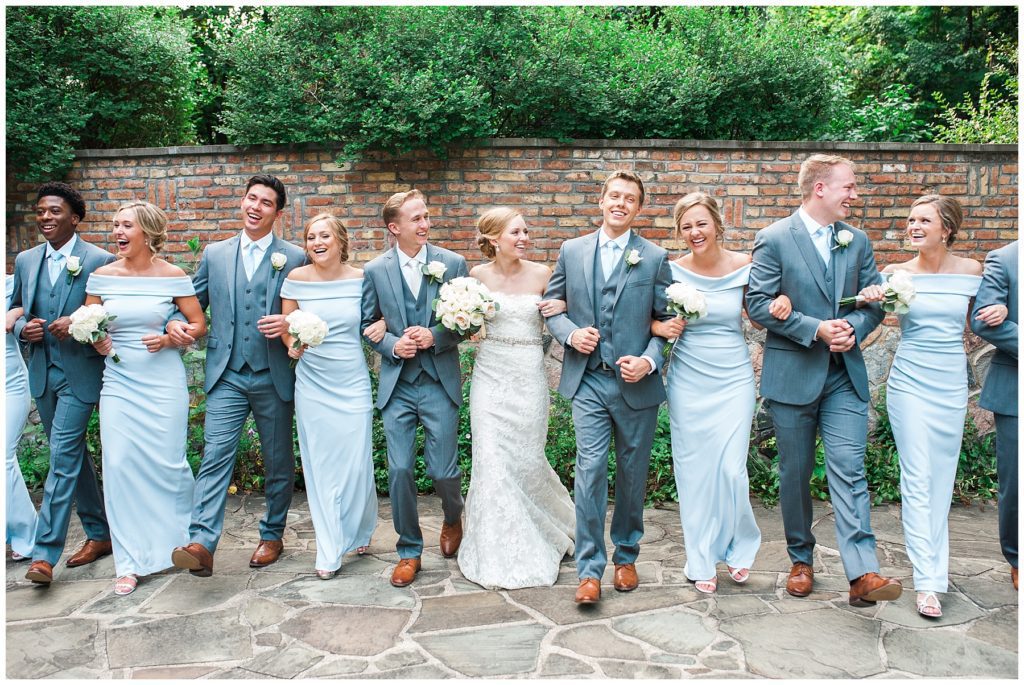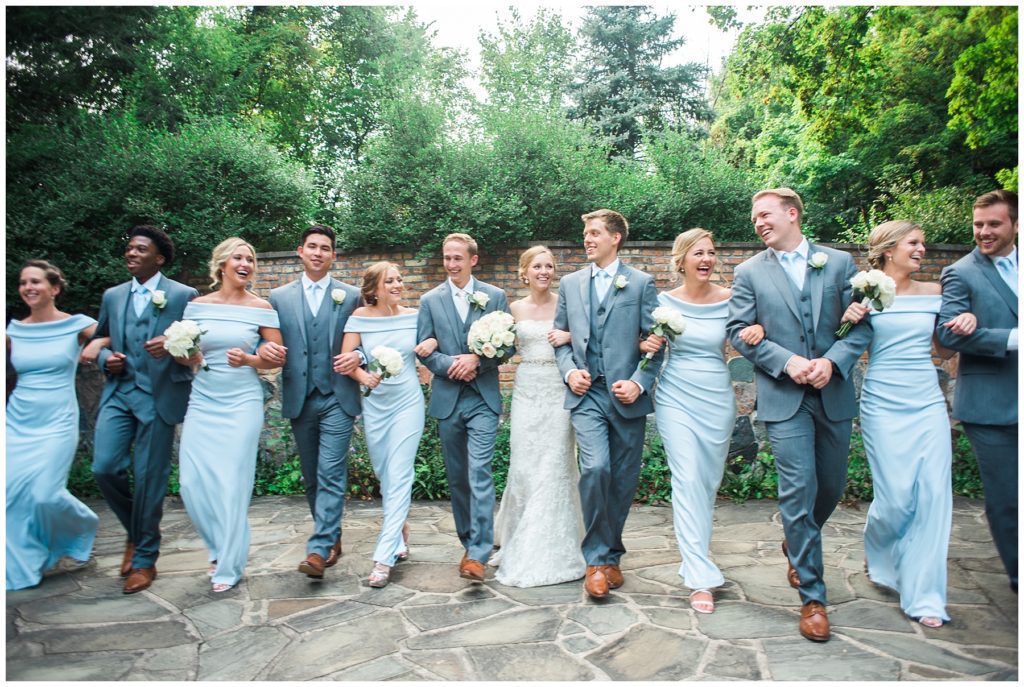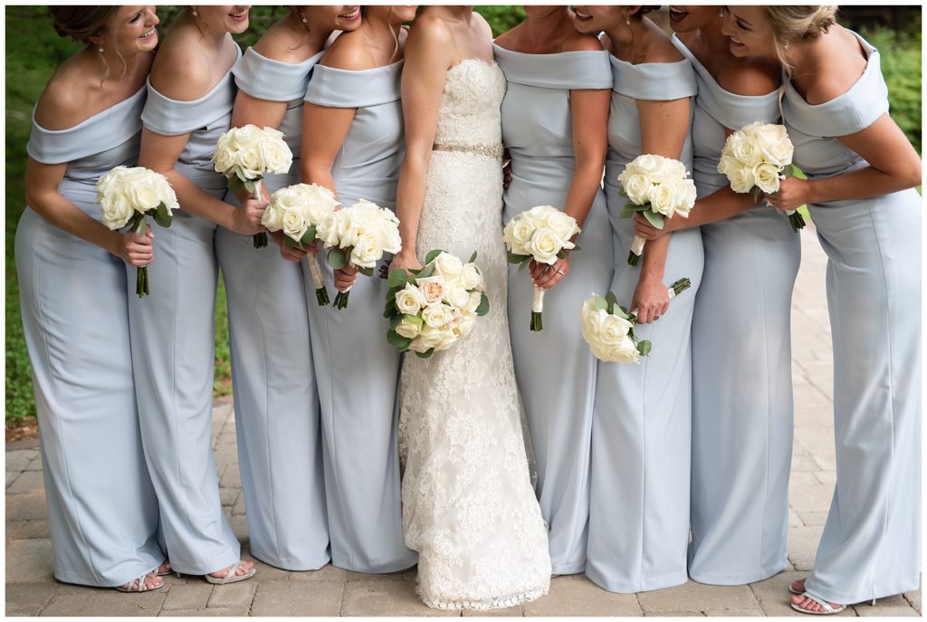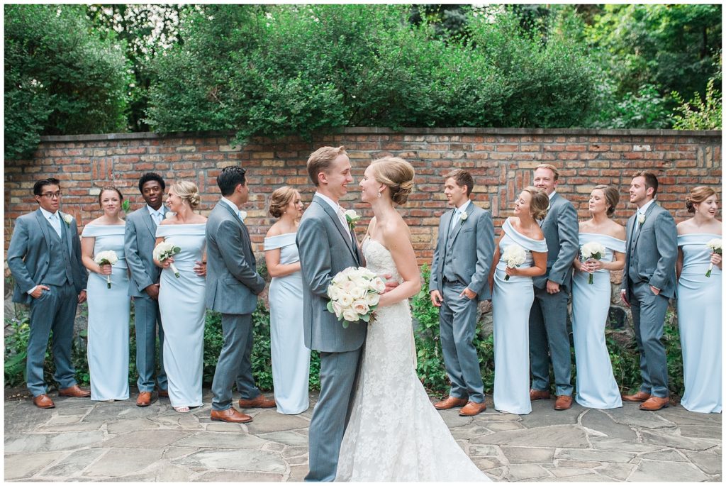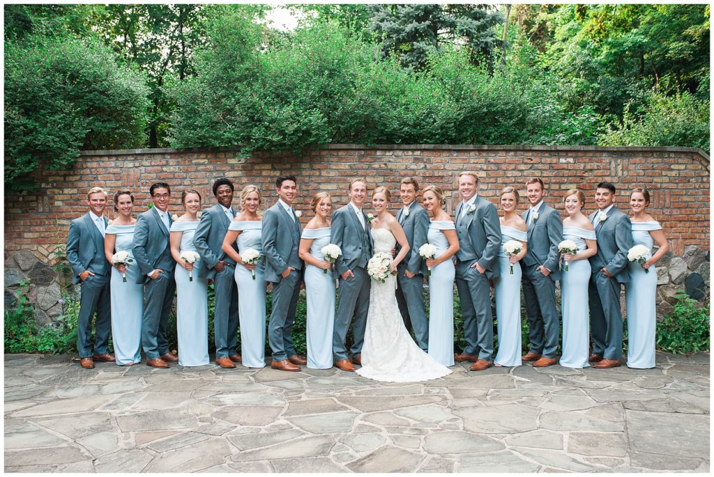 The Vince Camuto periwinkle bridesmaid dresses from Macy’s popped when up put up against the gray Engara suits that the groomsmen wore from Men’s Warehouse.