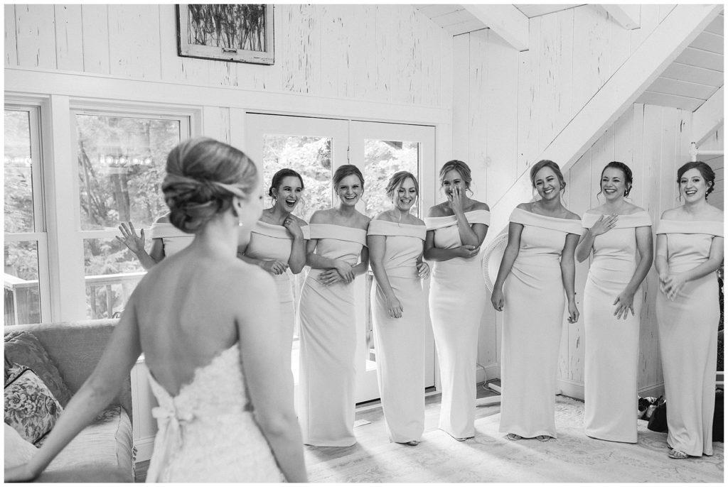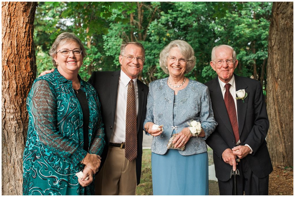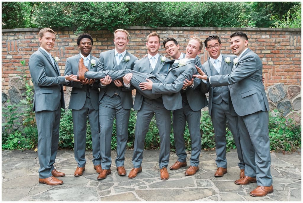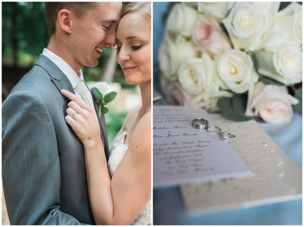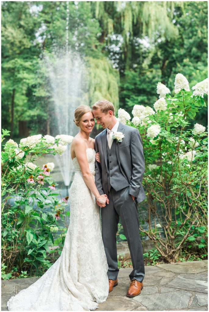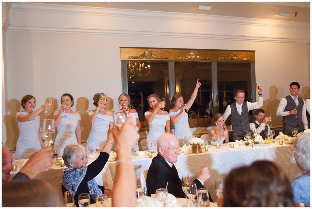 The Vince Camuto periwinkle bridesmaid dresses from Macy’s popped when up put up against the gray Engara suits that the groomsmen wore from Men’s Warehouse.