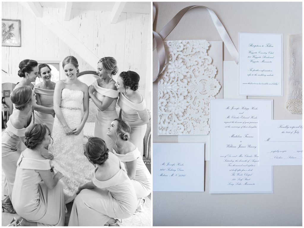 Vendors for the day included::// Ceremony:: The Woods Chapel // Reception:: Wayzata Country Club //Hair:: Anna Root // Florist:: Bachmans // Wedding Dress:: Posh Bridal Couture // Bridesmaids Dresses:: Vince Camuto from Macy’s // Men’s Ware:: Egara from Men’s Warehouse// Rings:: Helzberg Diamonds // Stationery:: Sue Hodapp// Caterer and Baker:: Wayzata Country Club // DJ:: Andy from Instant Request// Video:: Jeffery from Sunset Blue Productions //