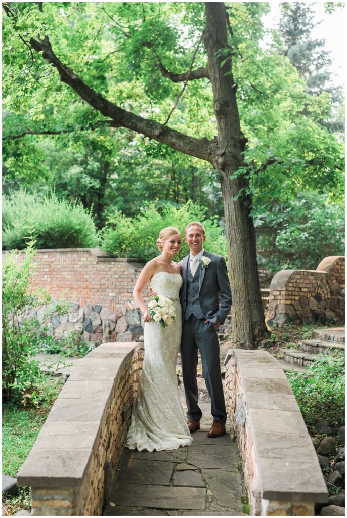 Billy and Maddie were wed at The Woods Chapel in Minnetonka with friends and family watching. Their beautiful August wedding day was full of sun and joy as they celebrated with friends and family from all over the US. Maddie’s beautiful wedding dress purchased from Posh Bridal paired perfectly with white roses and eucalyptus that Bachmans created for the day.